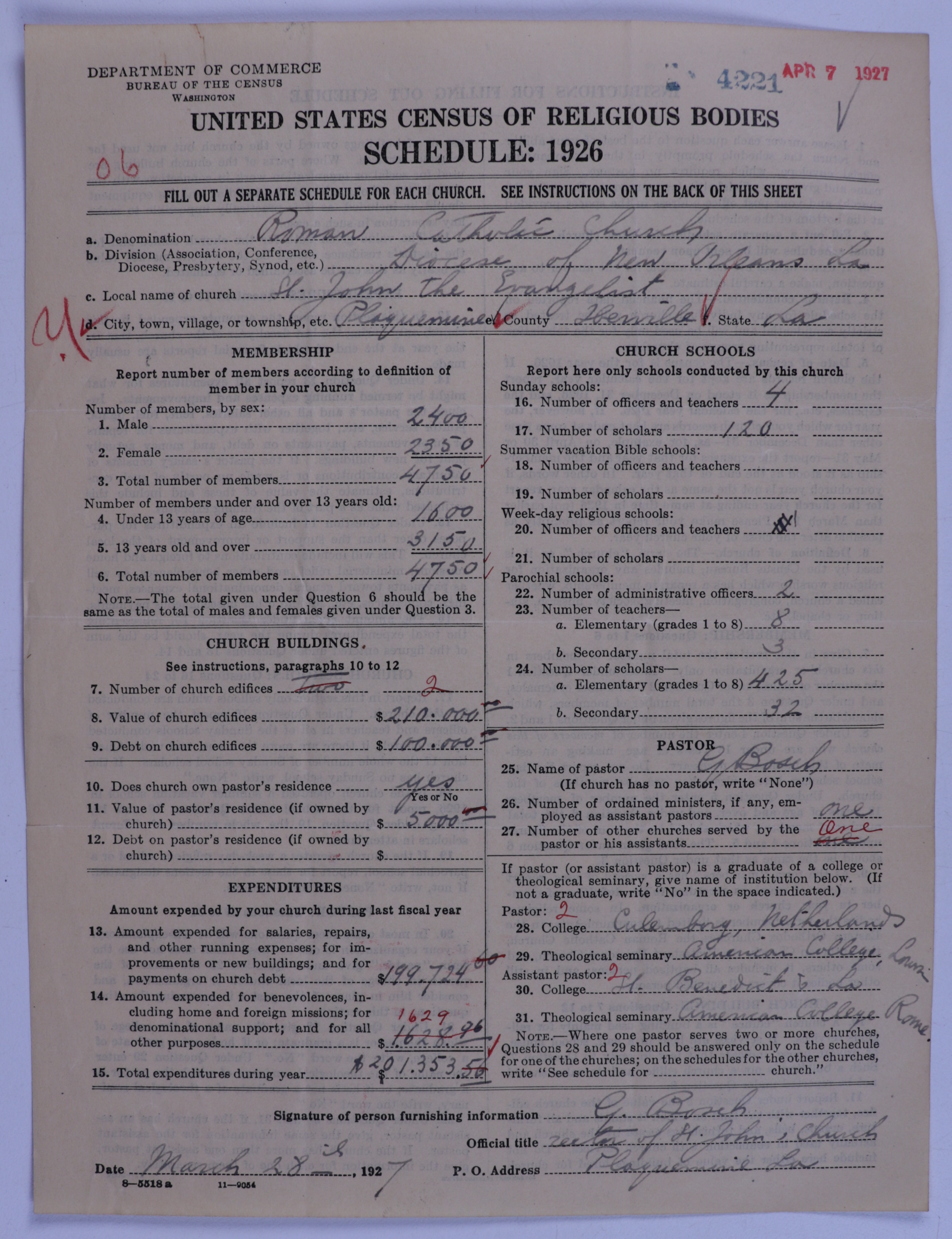 - Roman Catholic Church: 4221