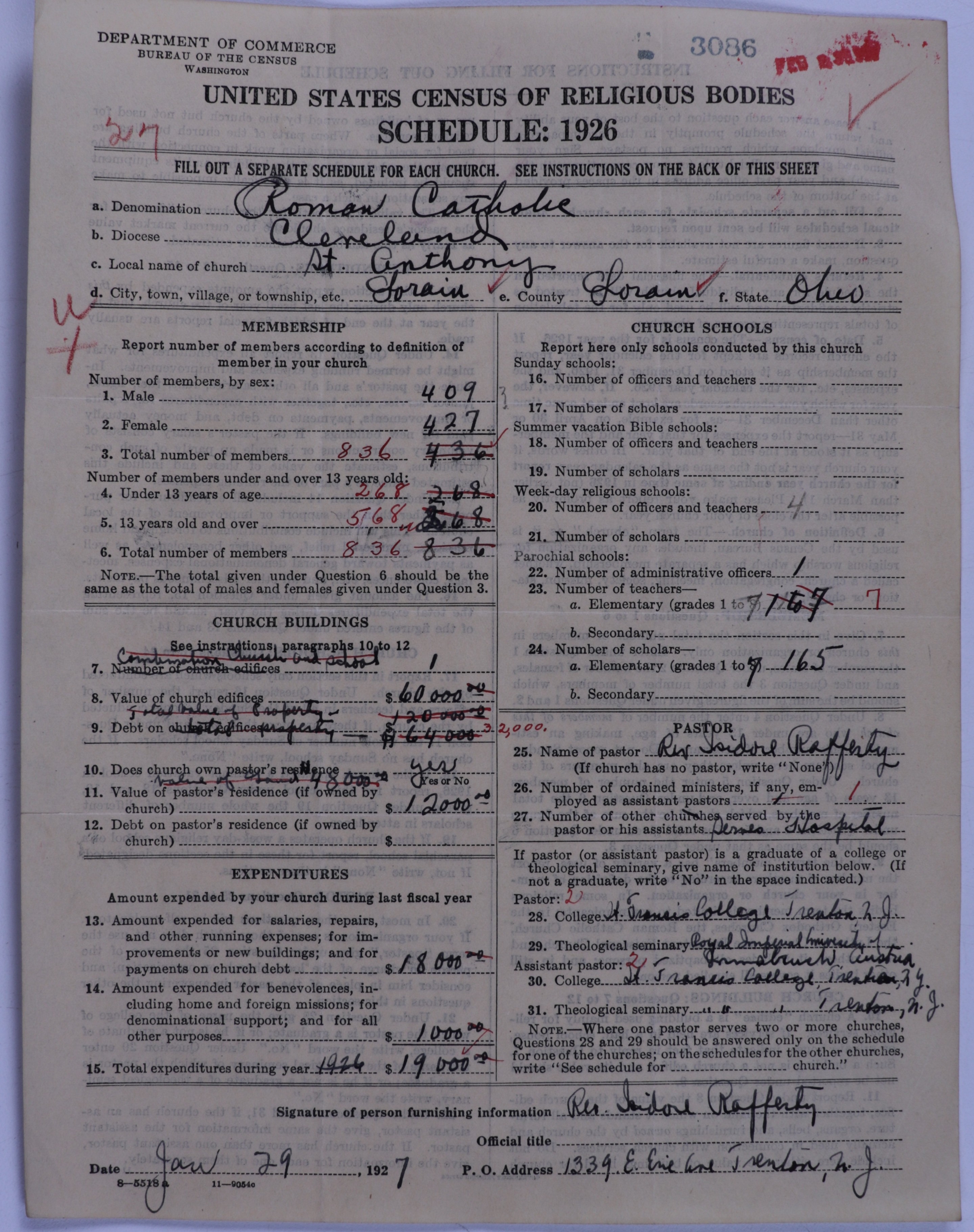 - Roman Catholic Church: 3086