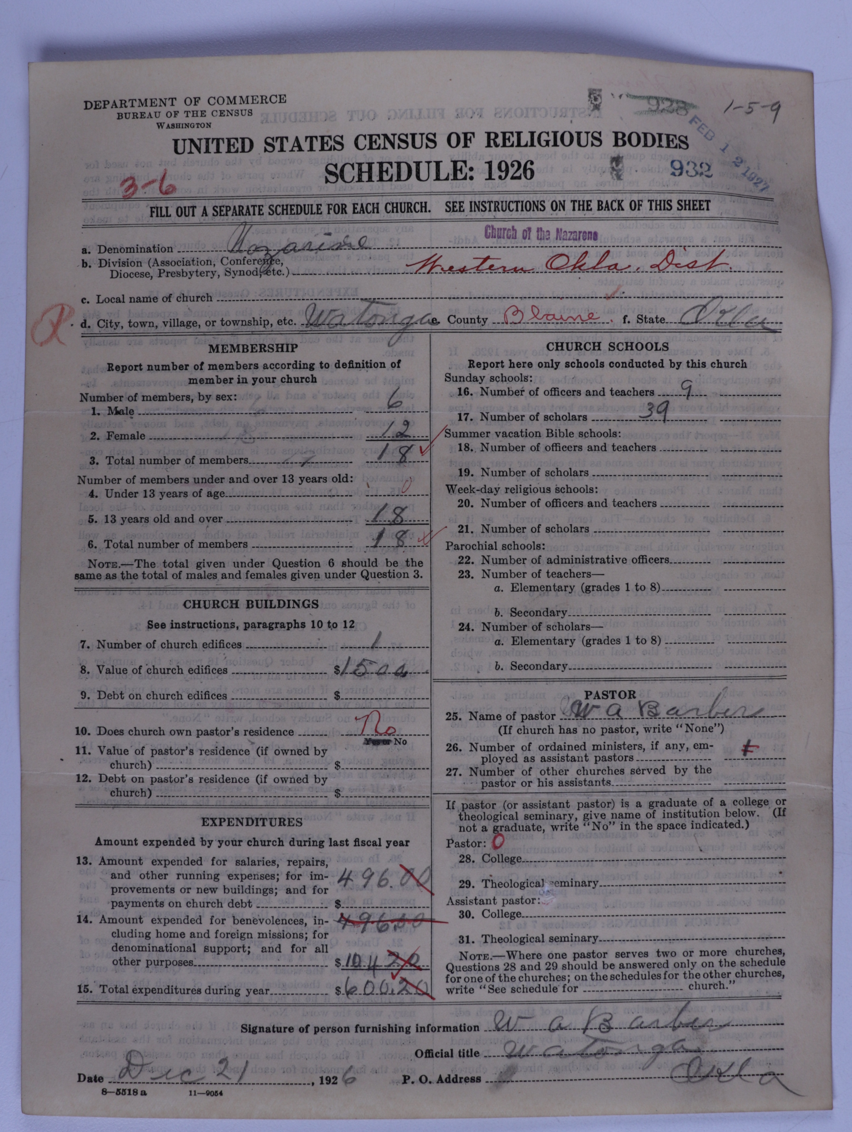Church of the Nazarene: 932