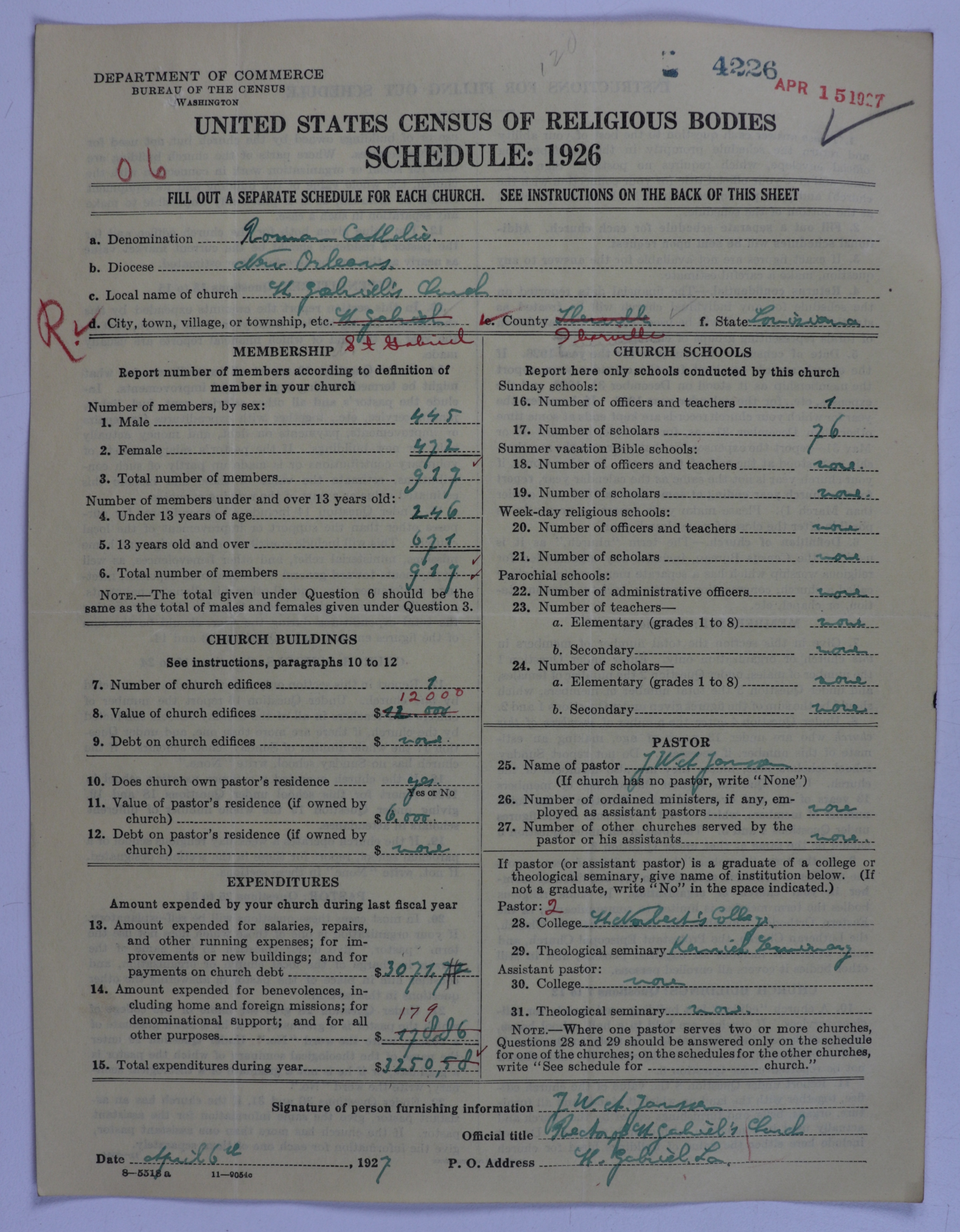 - Roman Catholic Church: 4226