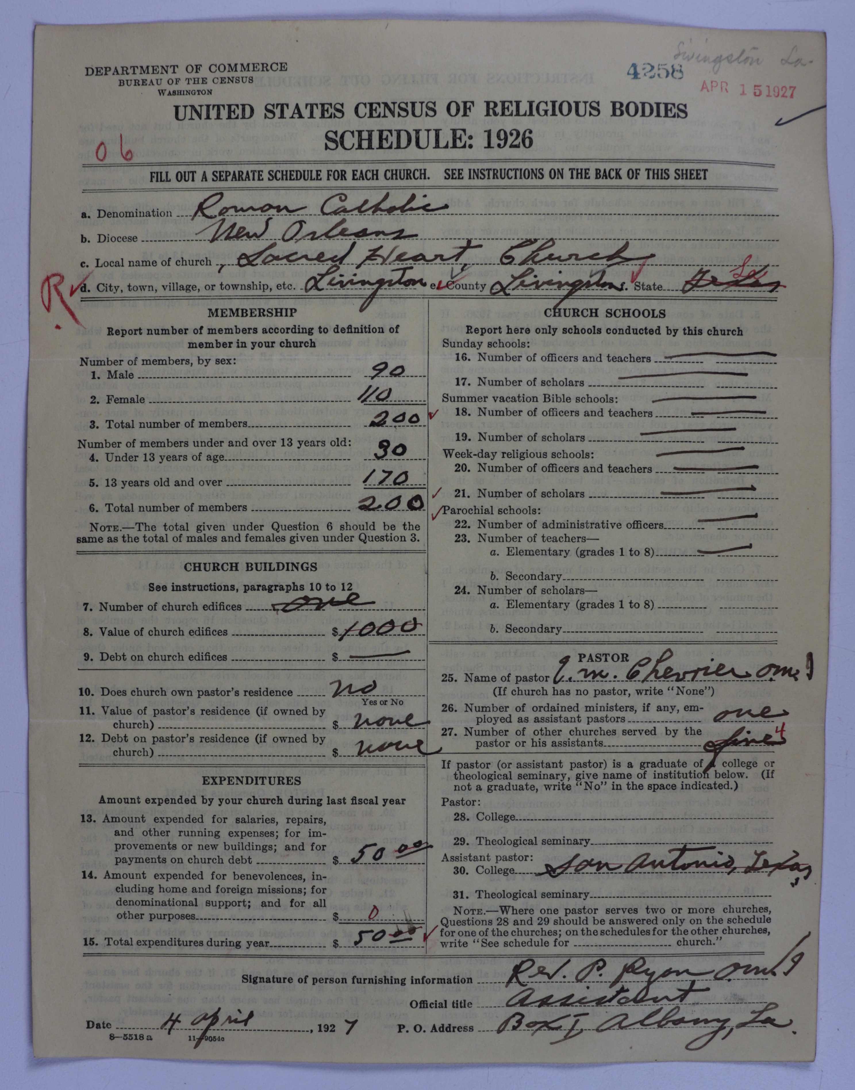 - Roman Catholic Church: 4258