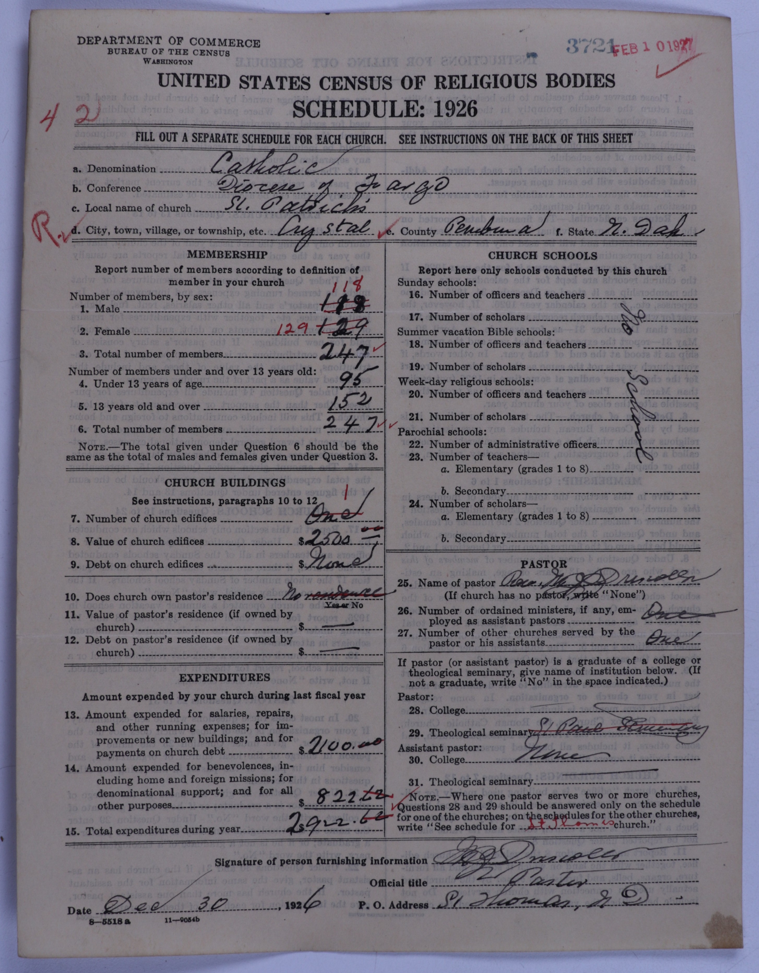 - Roman Catholic Church: 3721
