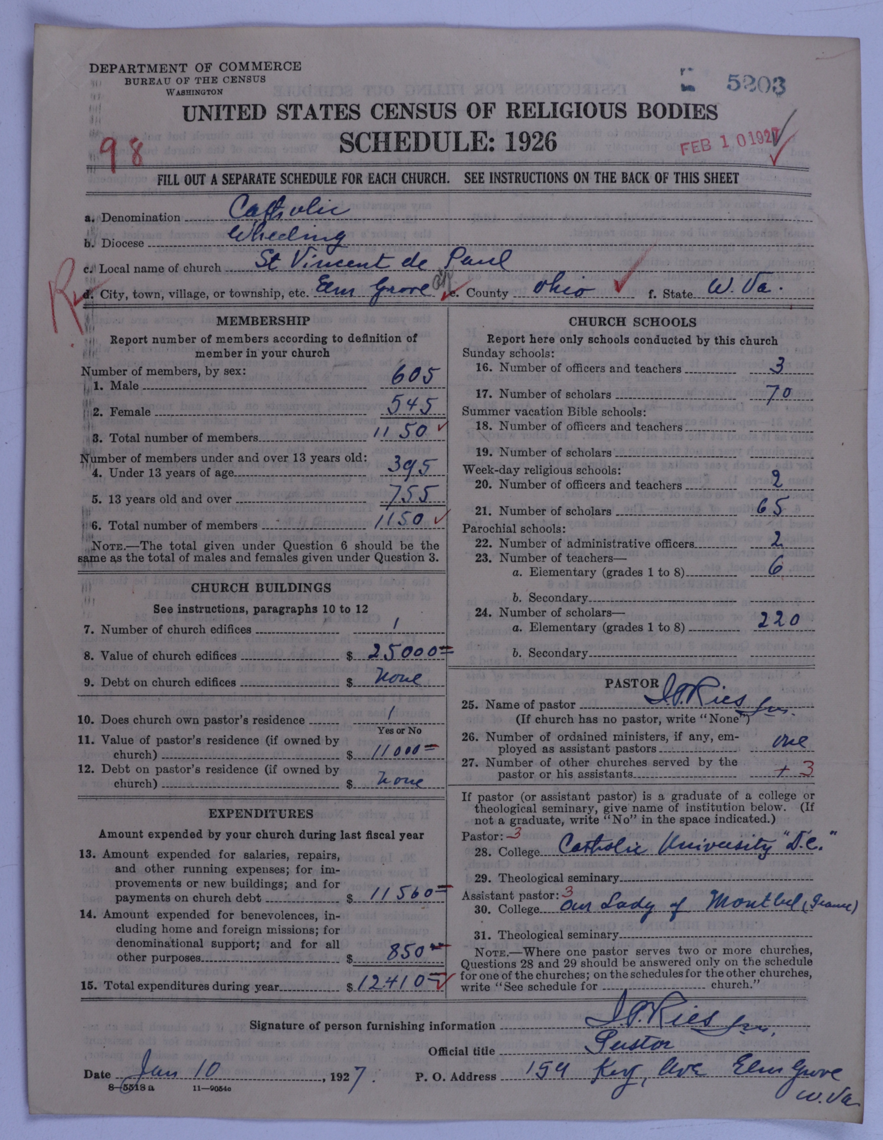 - Roman Catholic Church: 5203