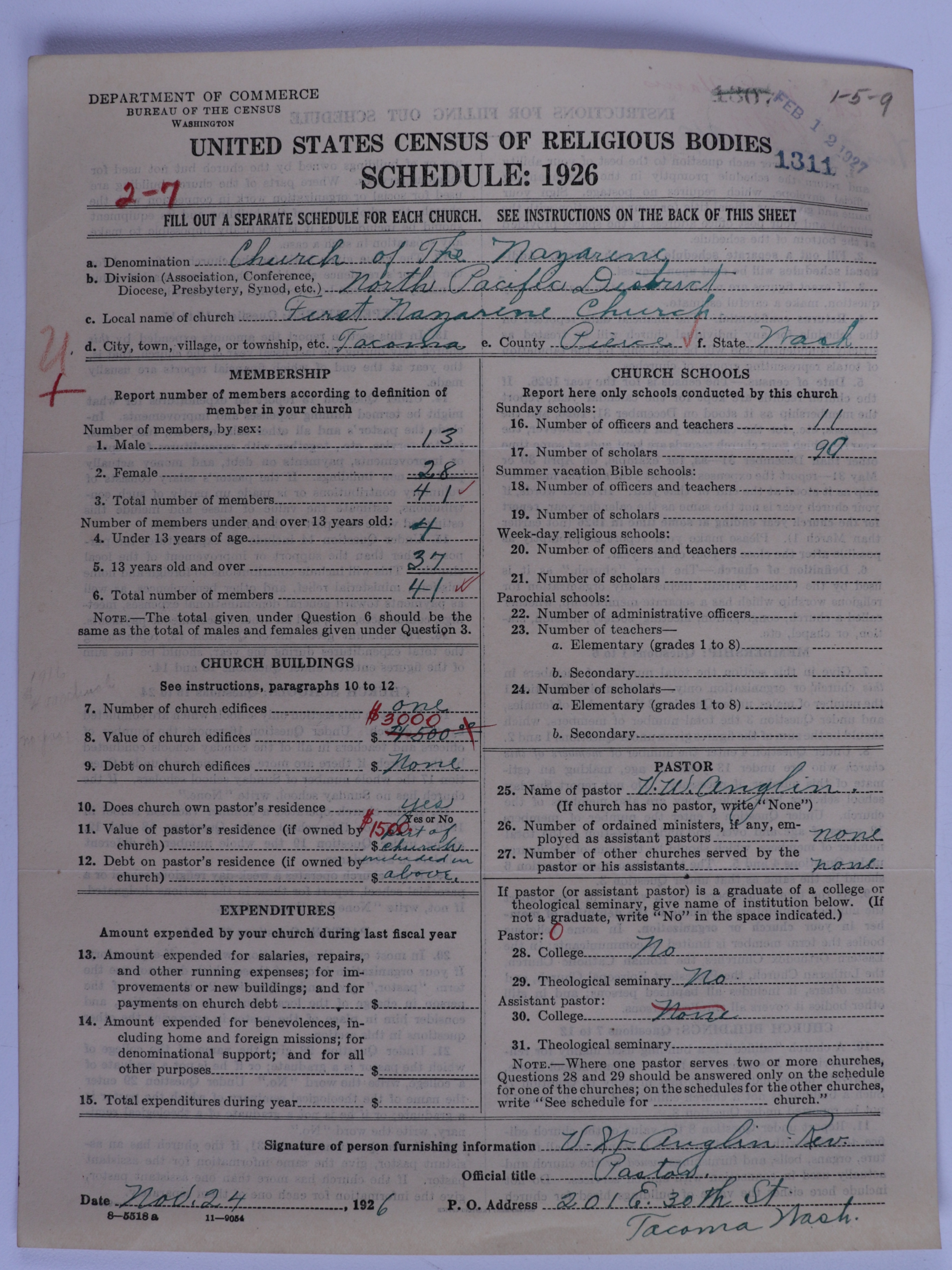 - Church of the Nazarene: 1311