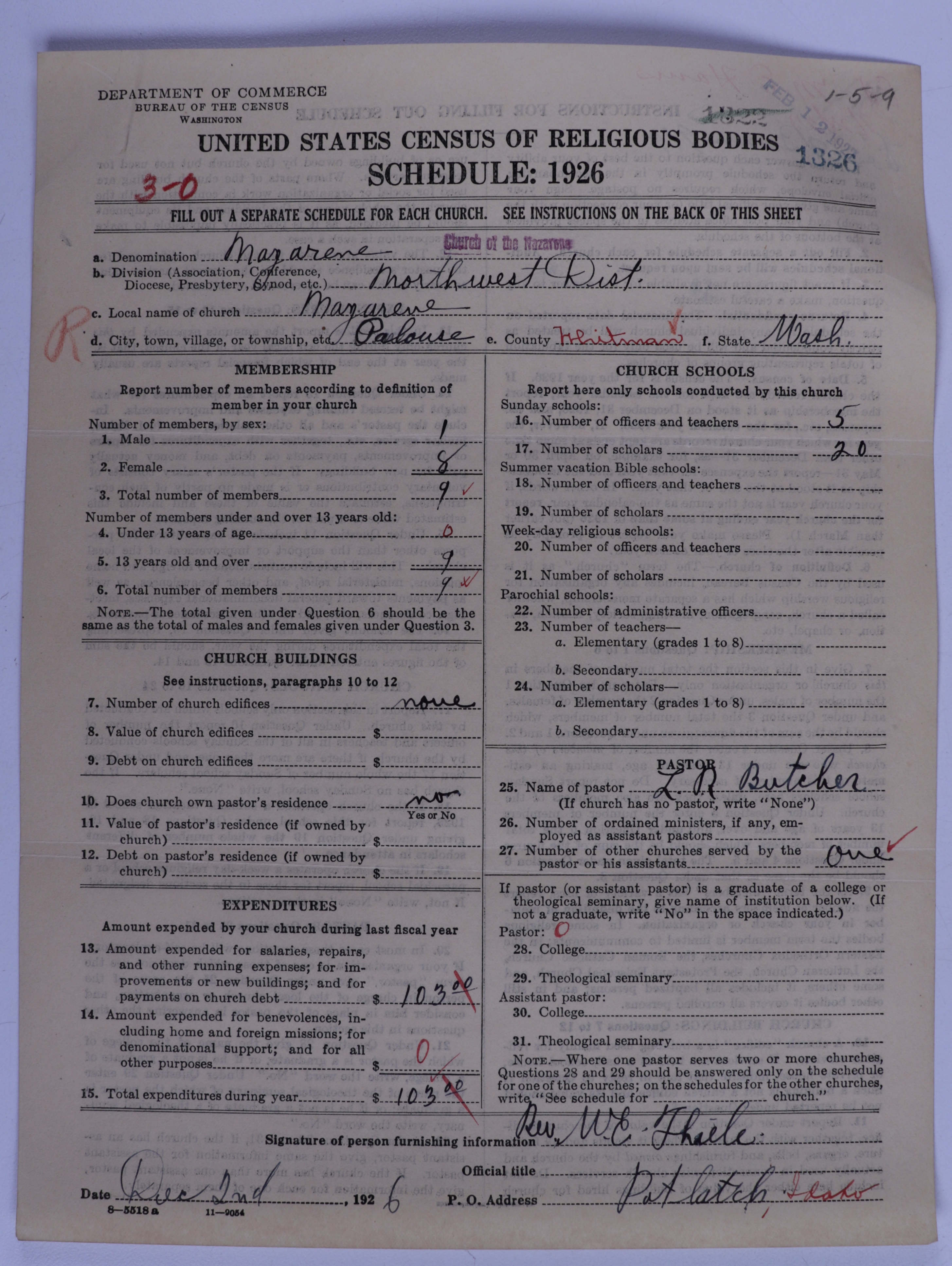 - Church of the Nazarene: 1326