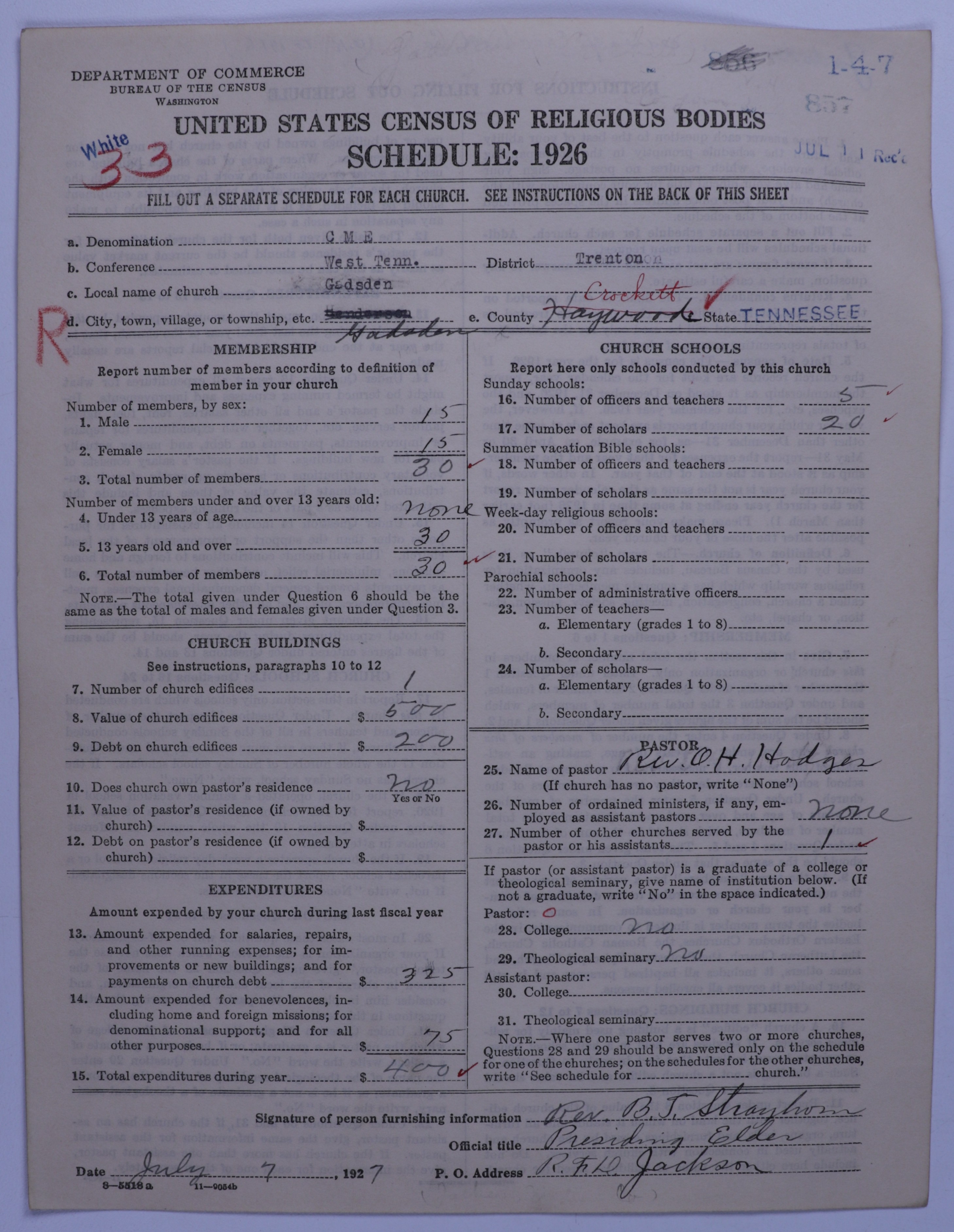 Colored Methodist Episcopal Church: 857