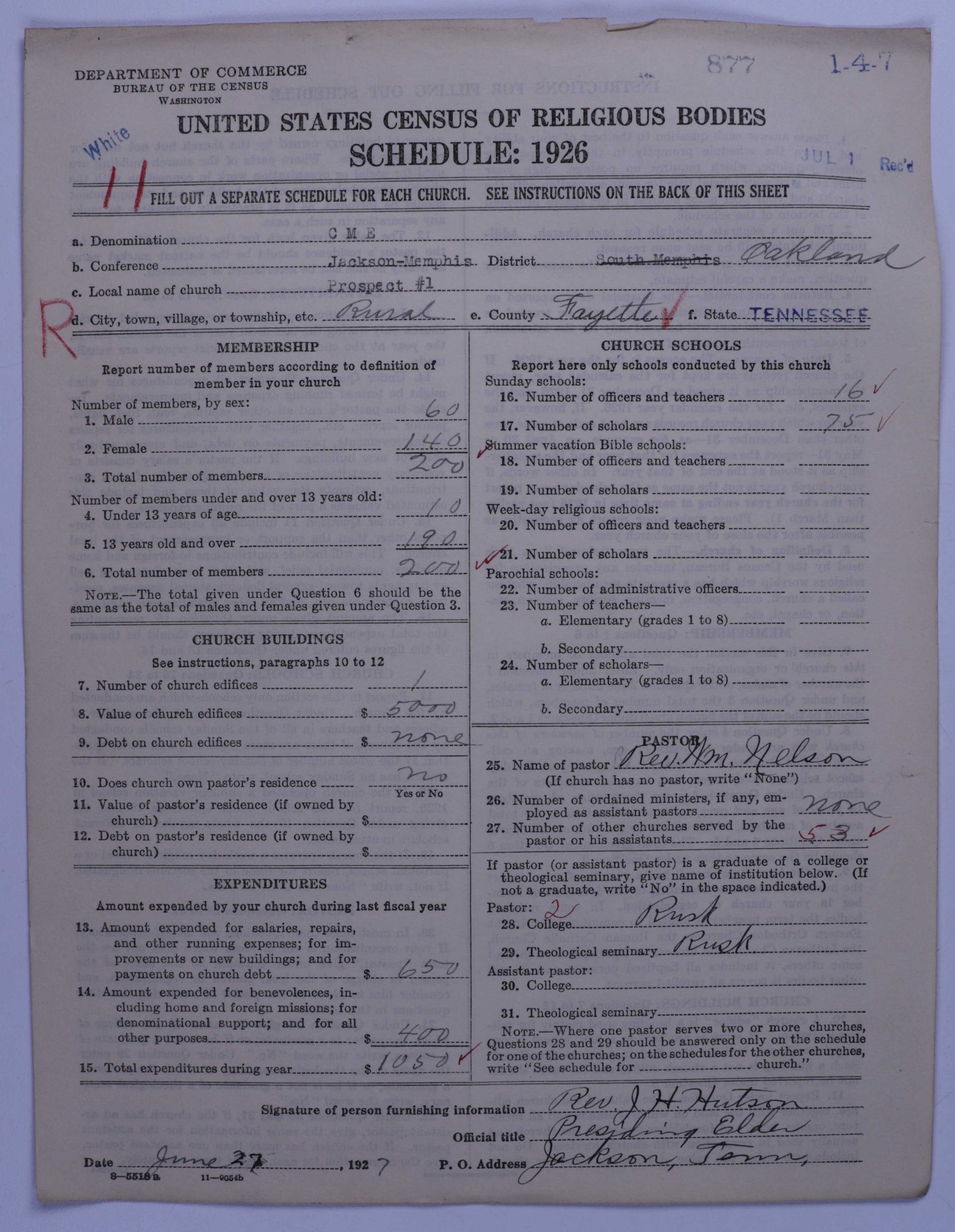 Colored Methodist Episcopal Church: 877