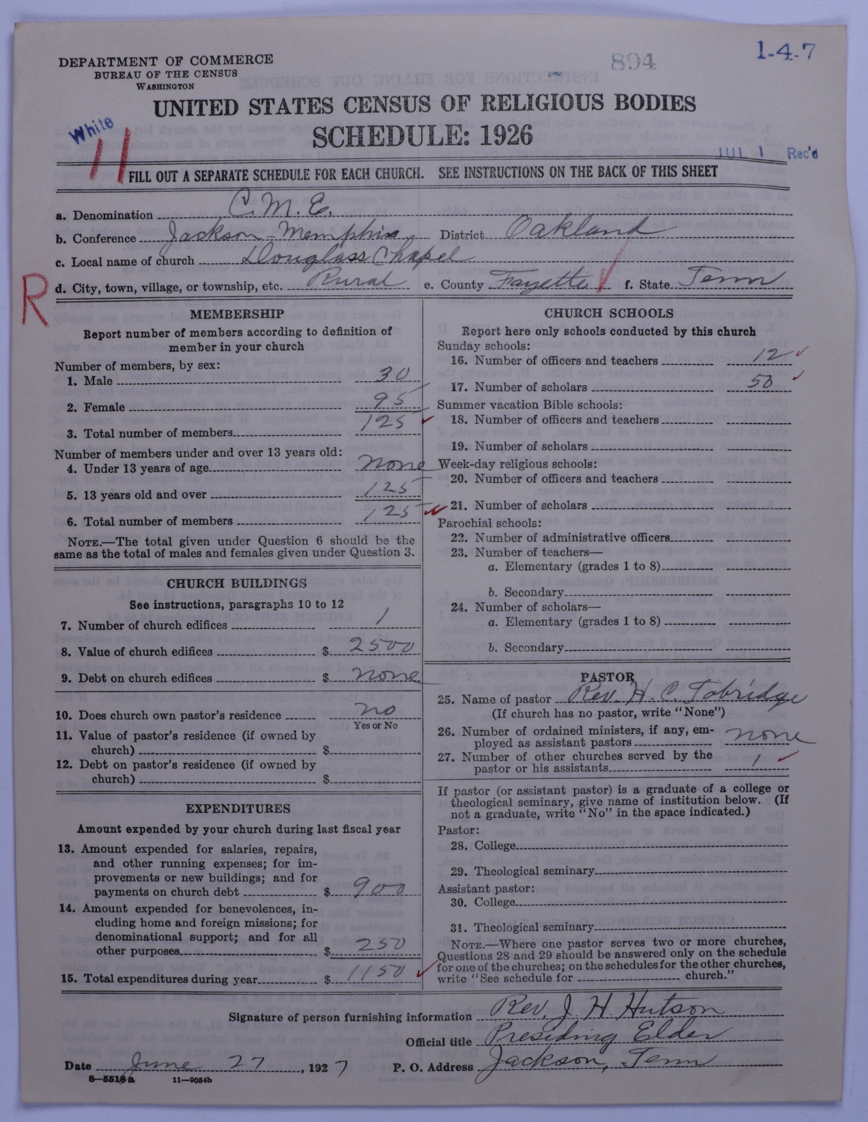 Colored Methodist Episcopal Church: 894