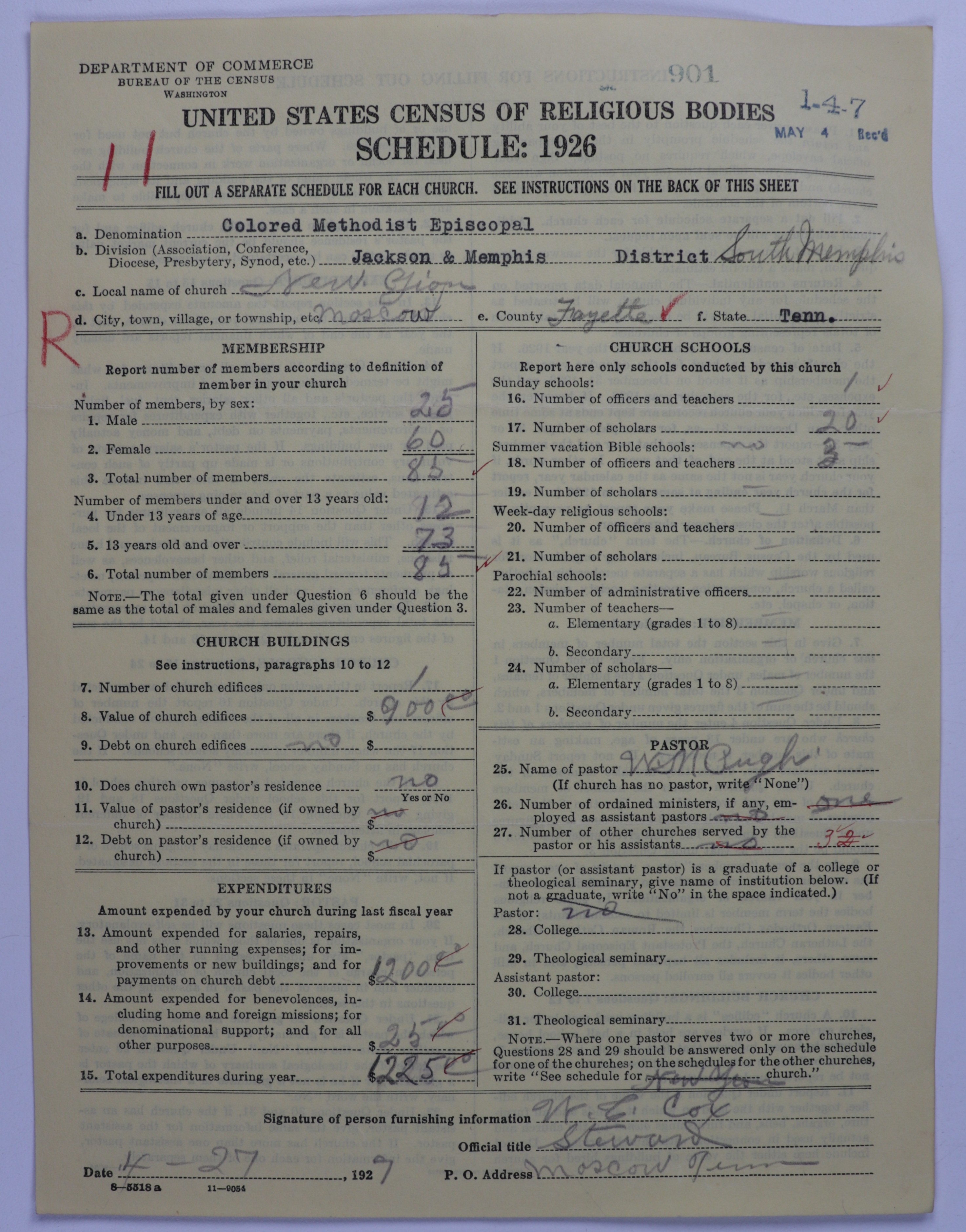 Colored Methodist Episcopal Church: 901