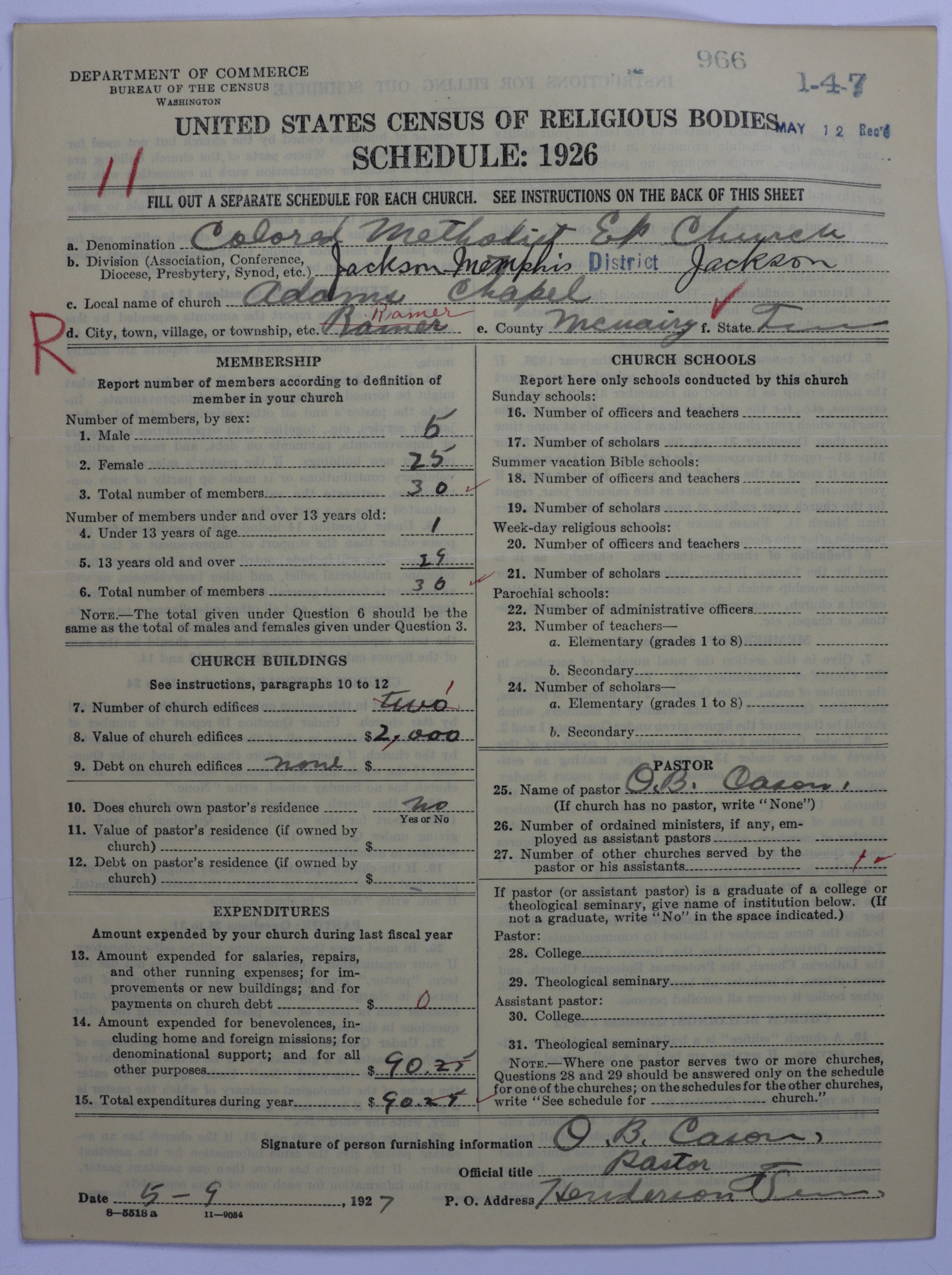 Colored Methodist Episcopal Church: 966