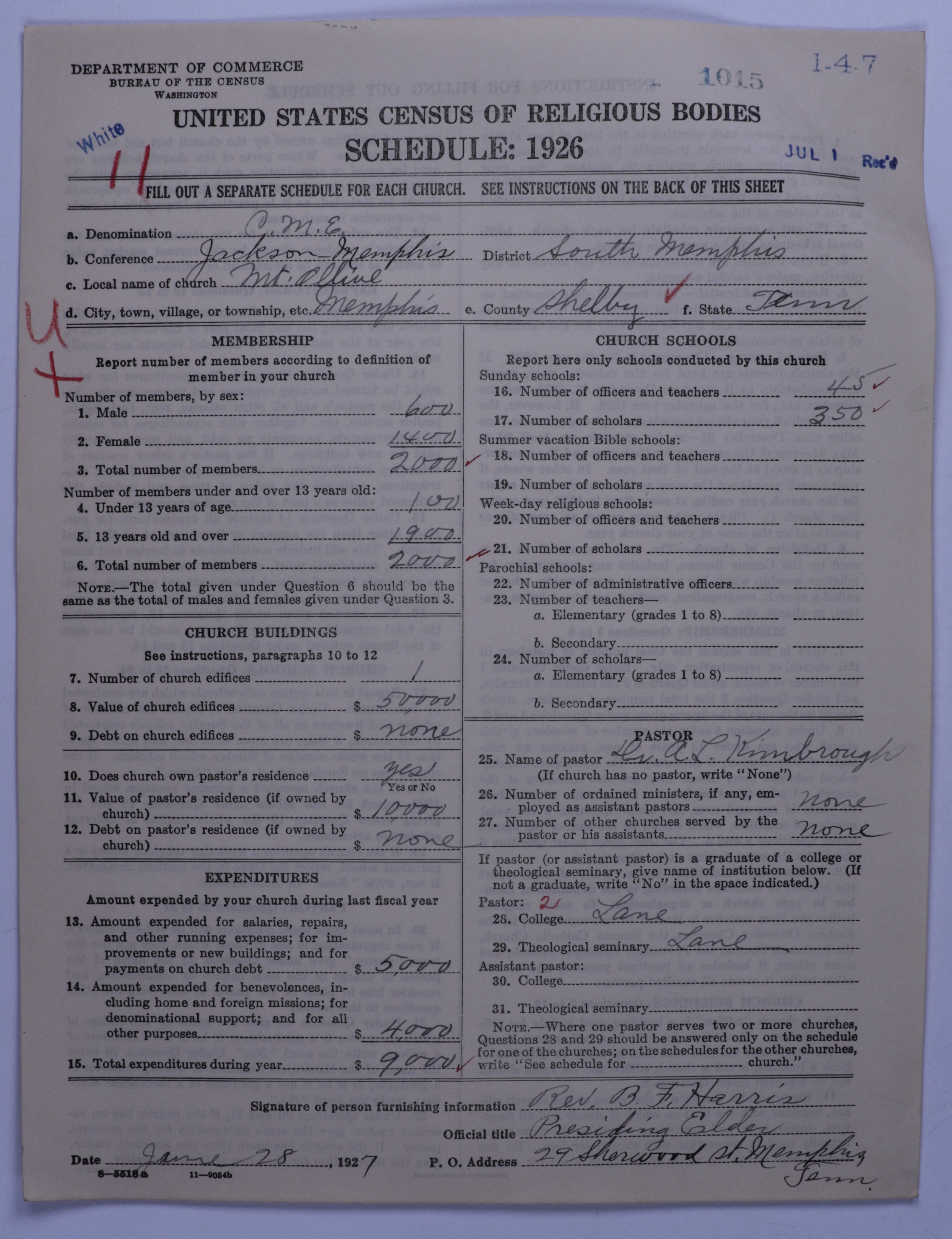 Colored Methodist Episcopal Church: 1015