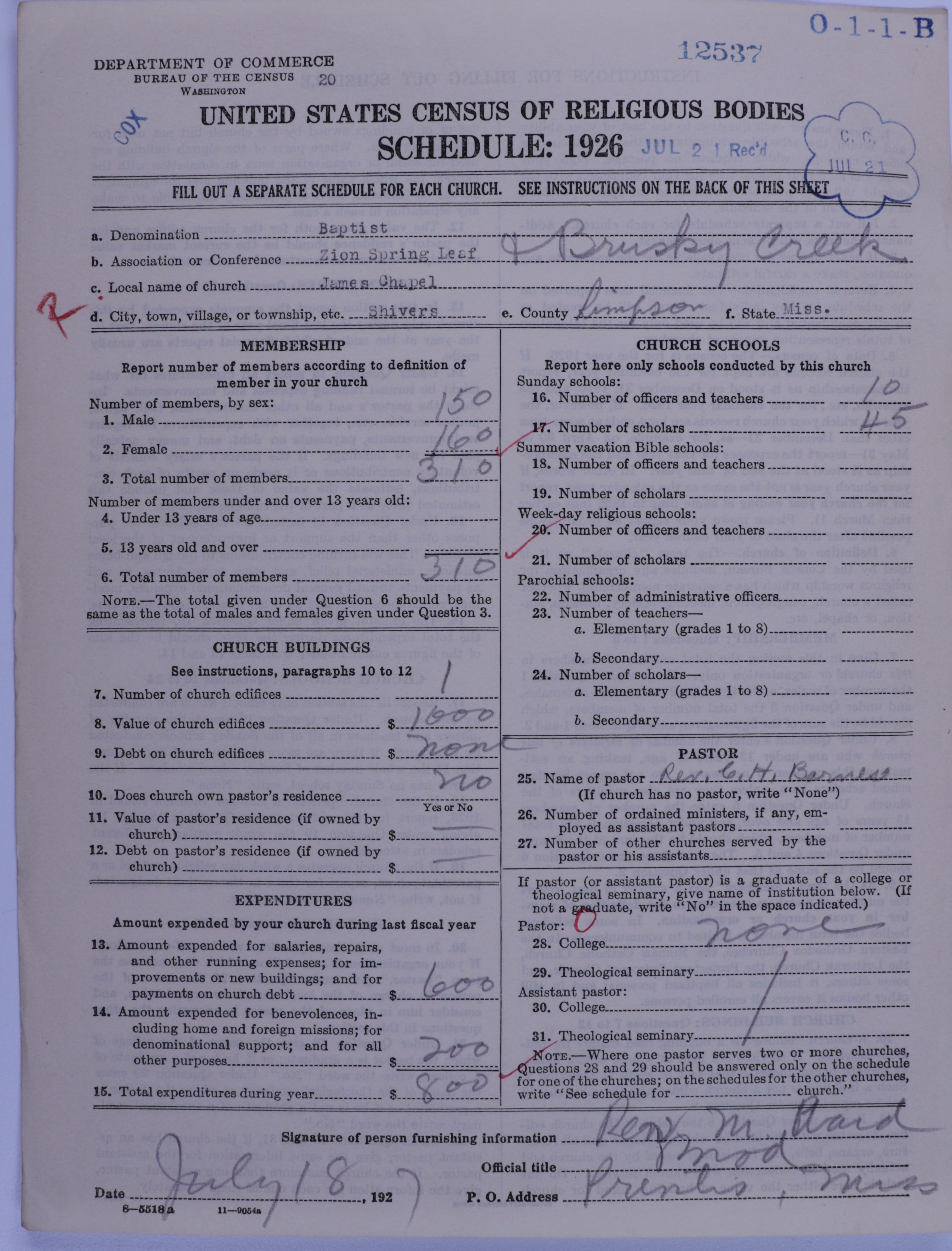 - Negro Baptists: 12537