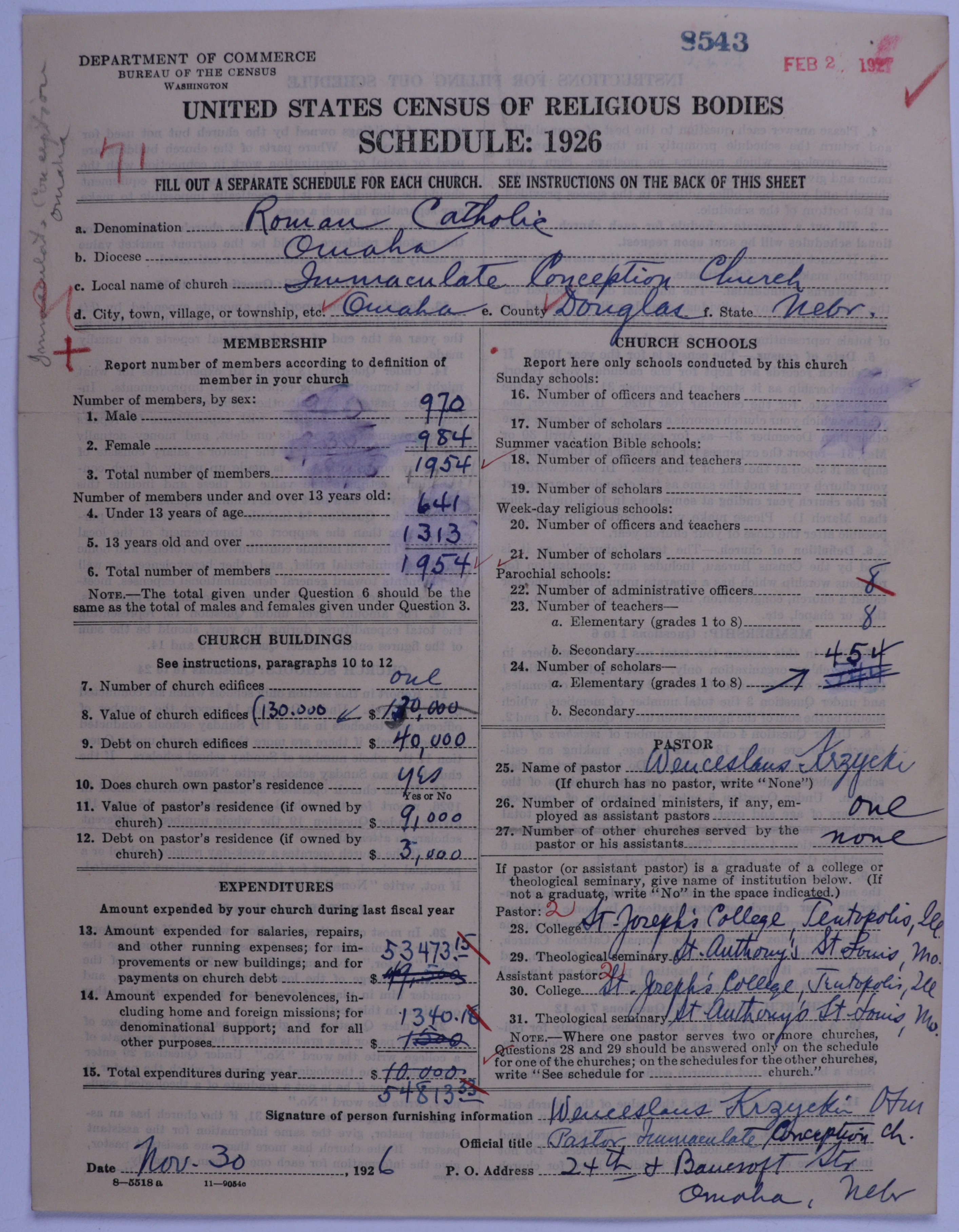 - Roman Catholic Church: 8543