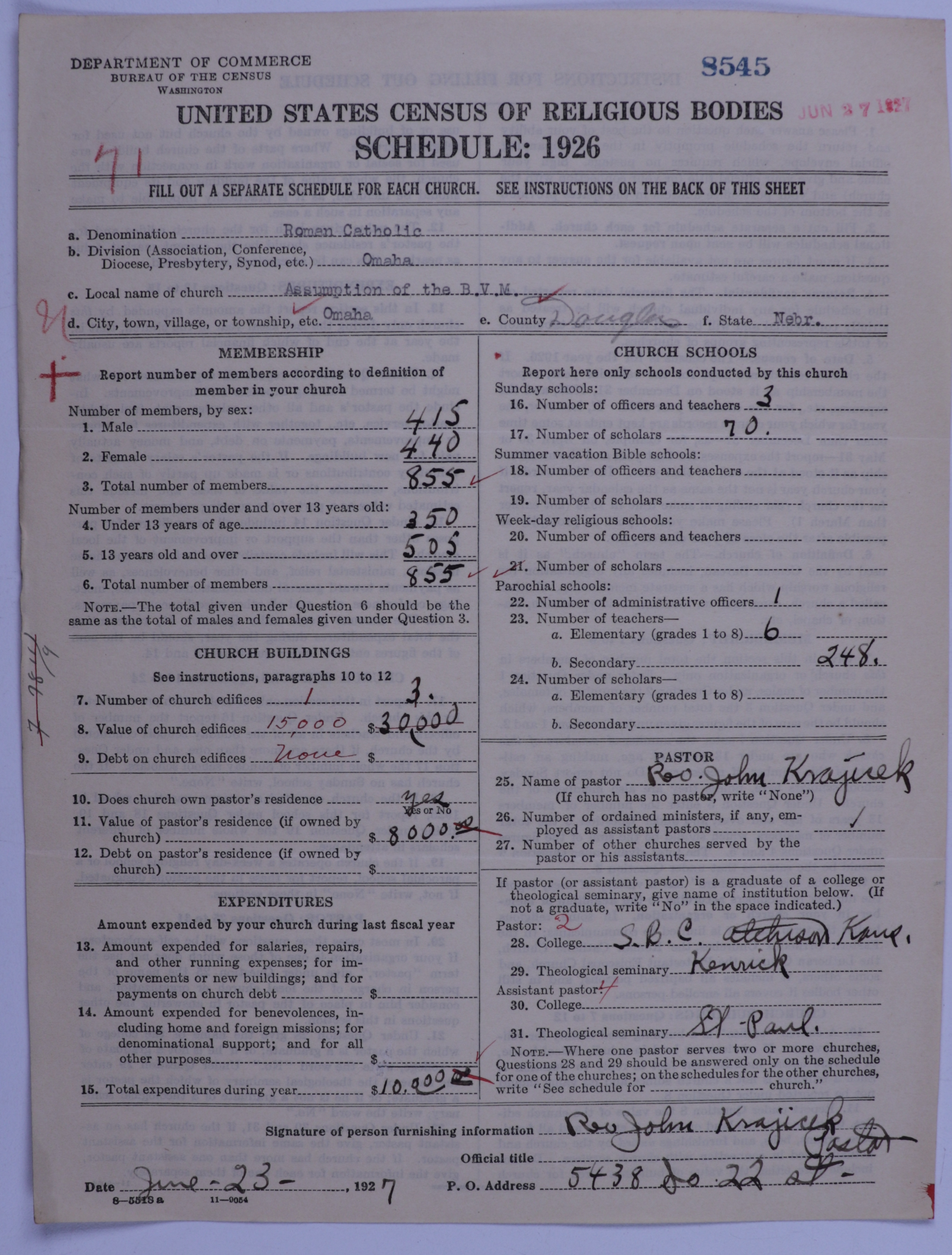 - Roman Catholic Church: 8545
