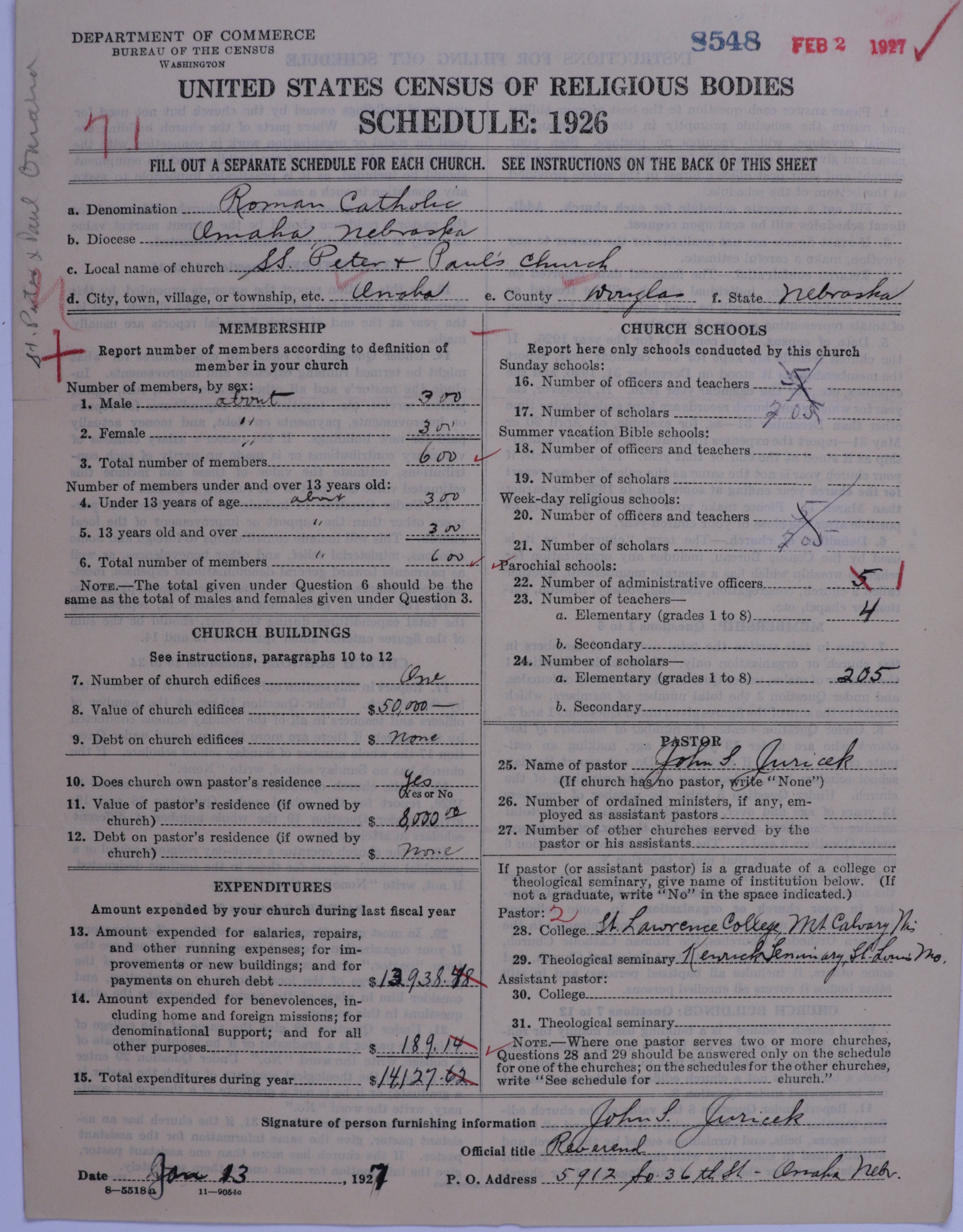 - Roman Catholic Church: 8548
