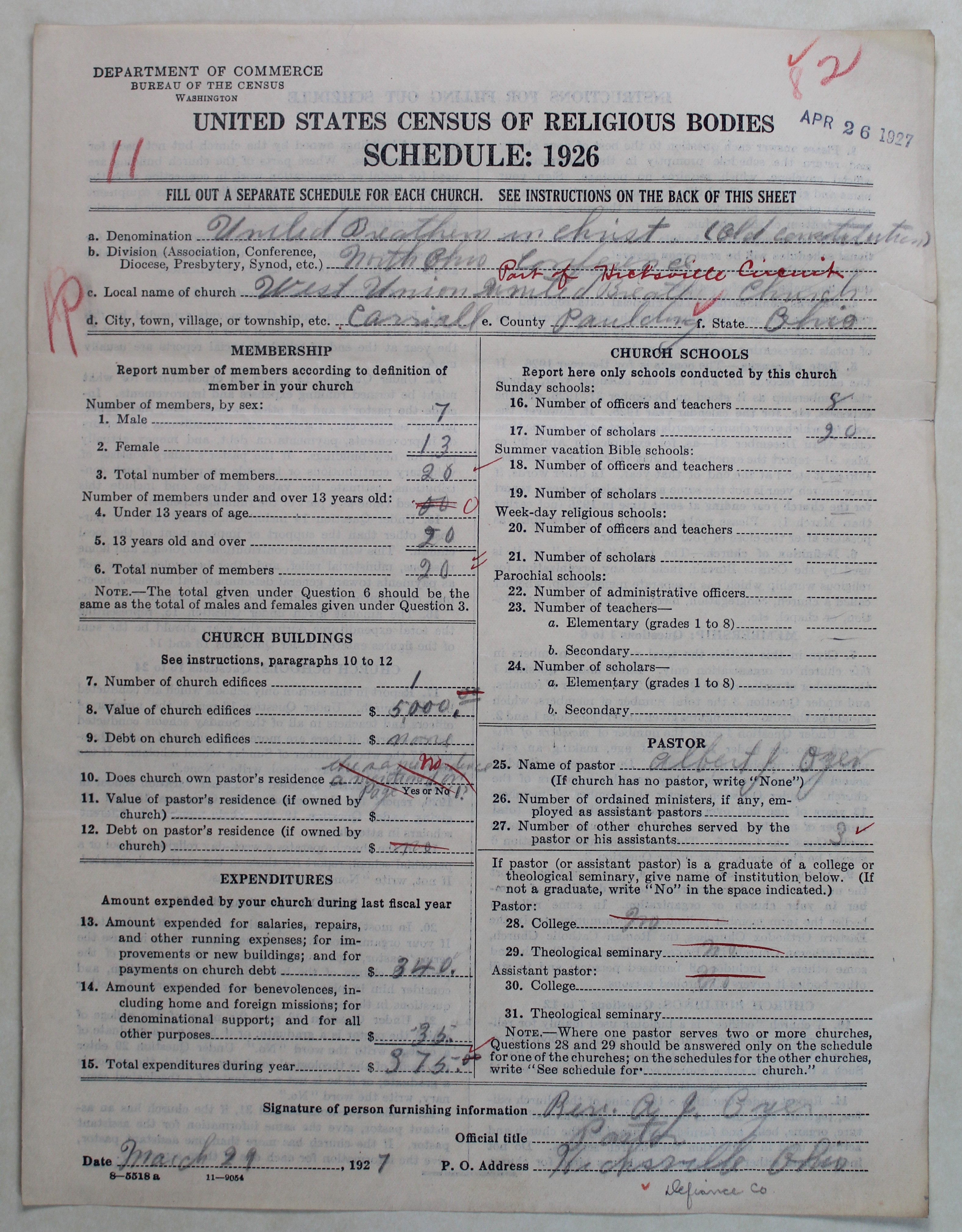 - 1926 U.S. Census of Religious Bodies