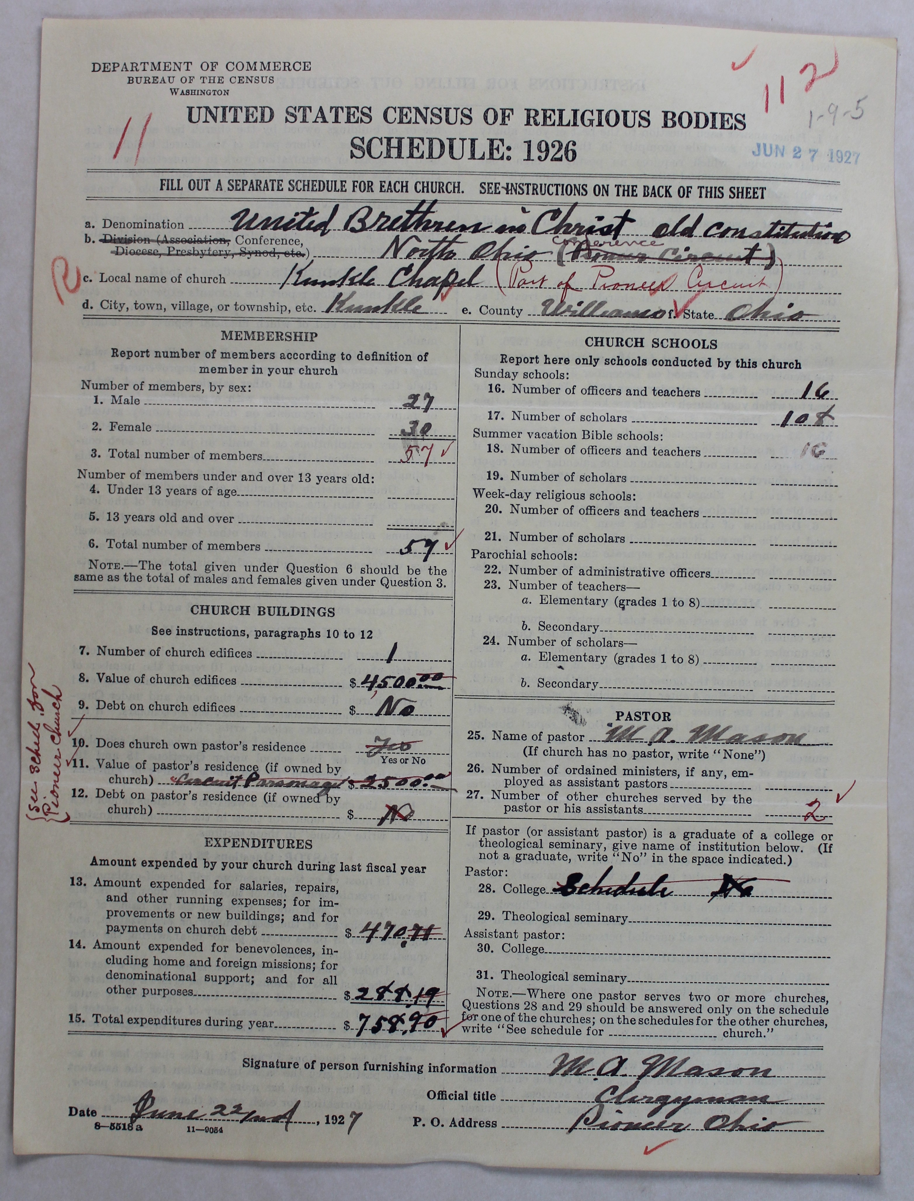 - Church of the United Brethren in Christ (Old Constitution): 112