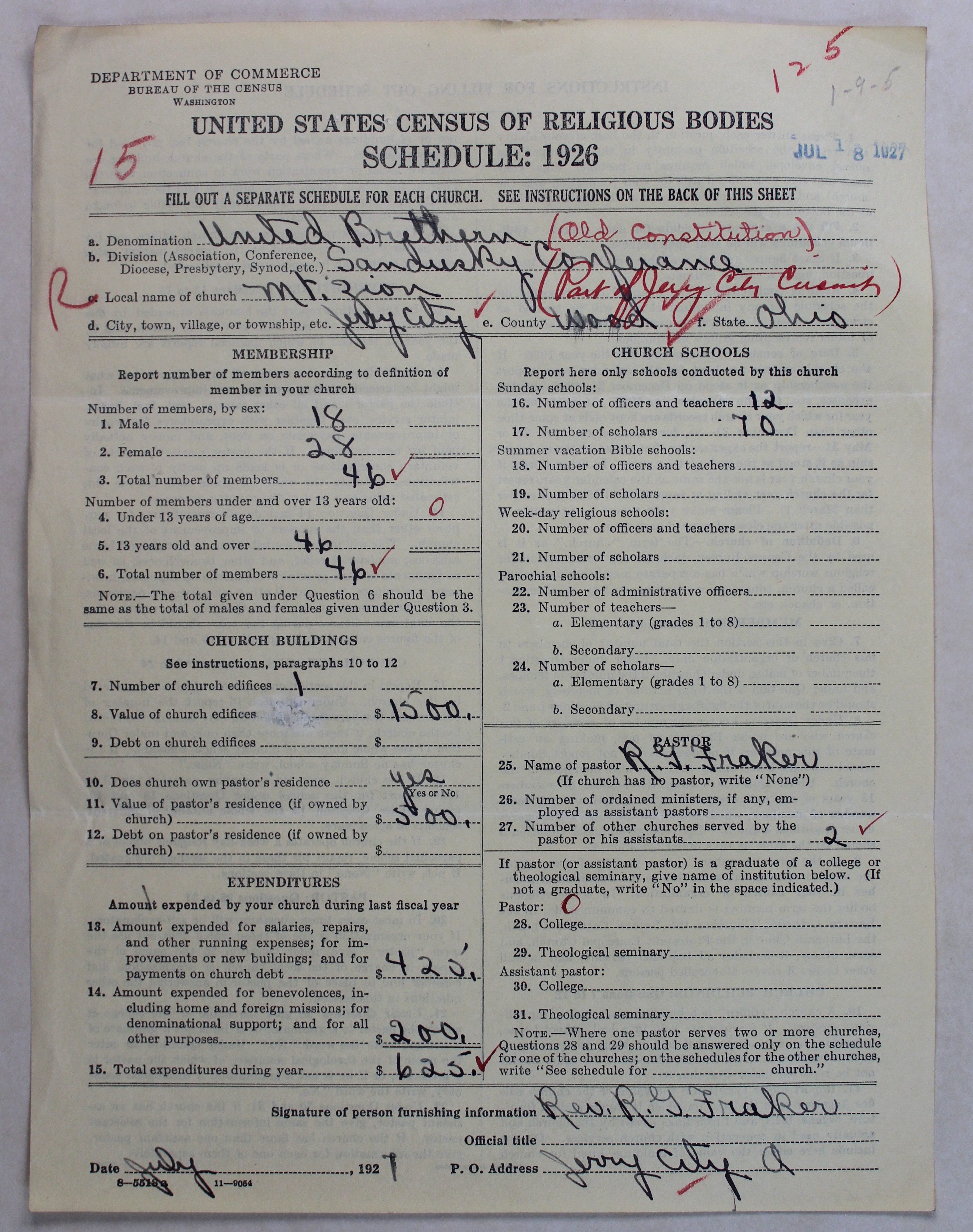- Church of the United Brethren in Christ (Old Constitution): 125