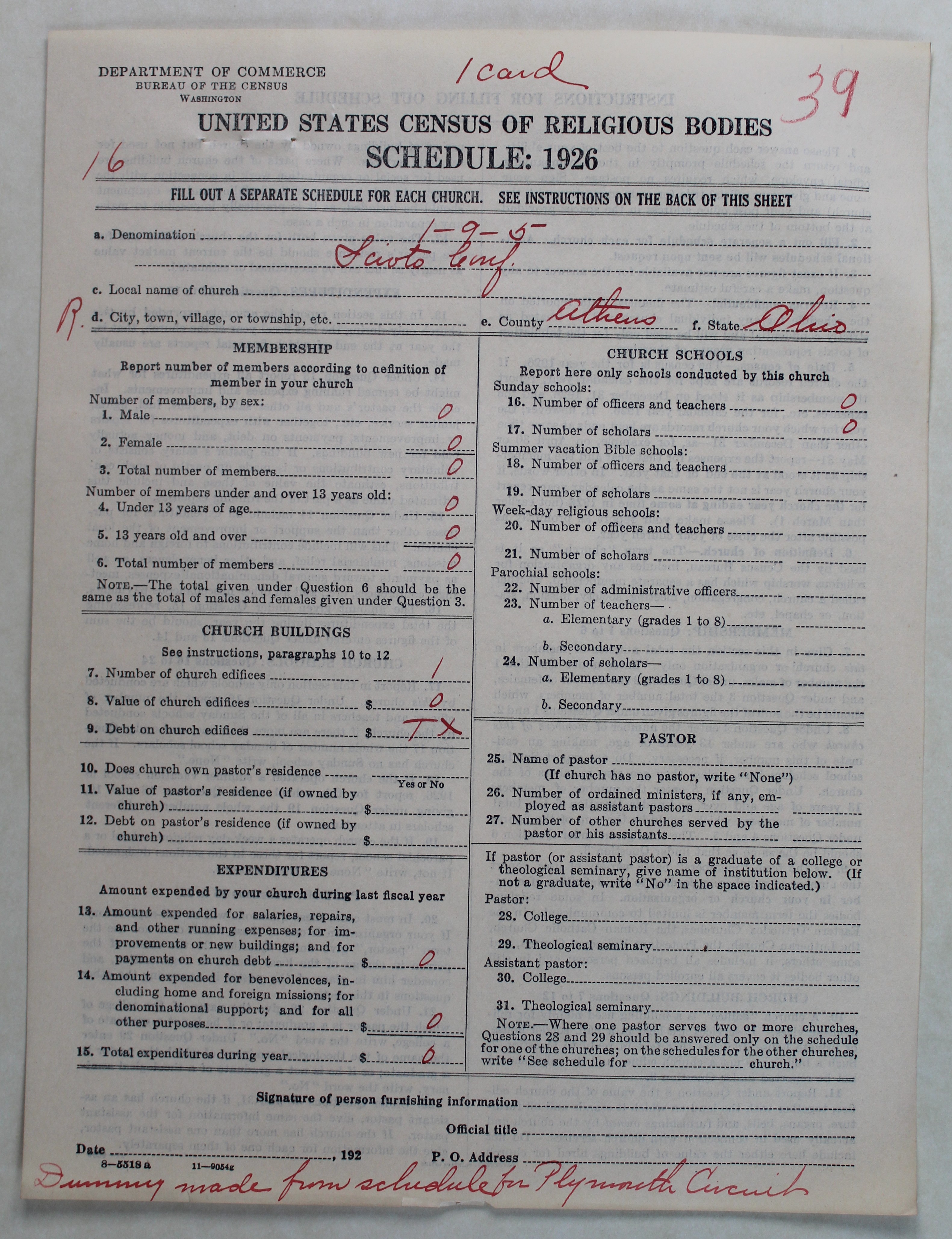 - Church of the United Brethren in Christ (Old Constitution): 39