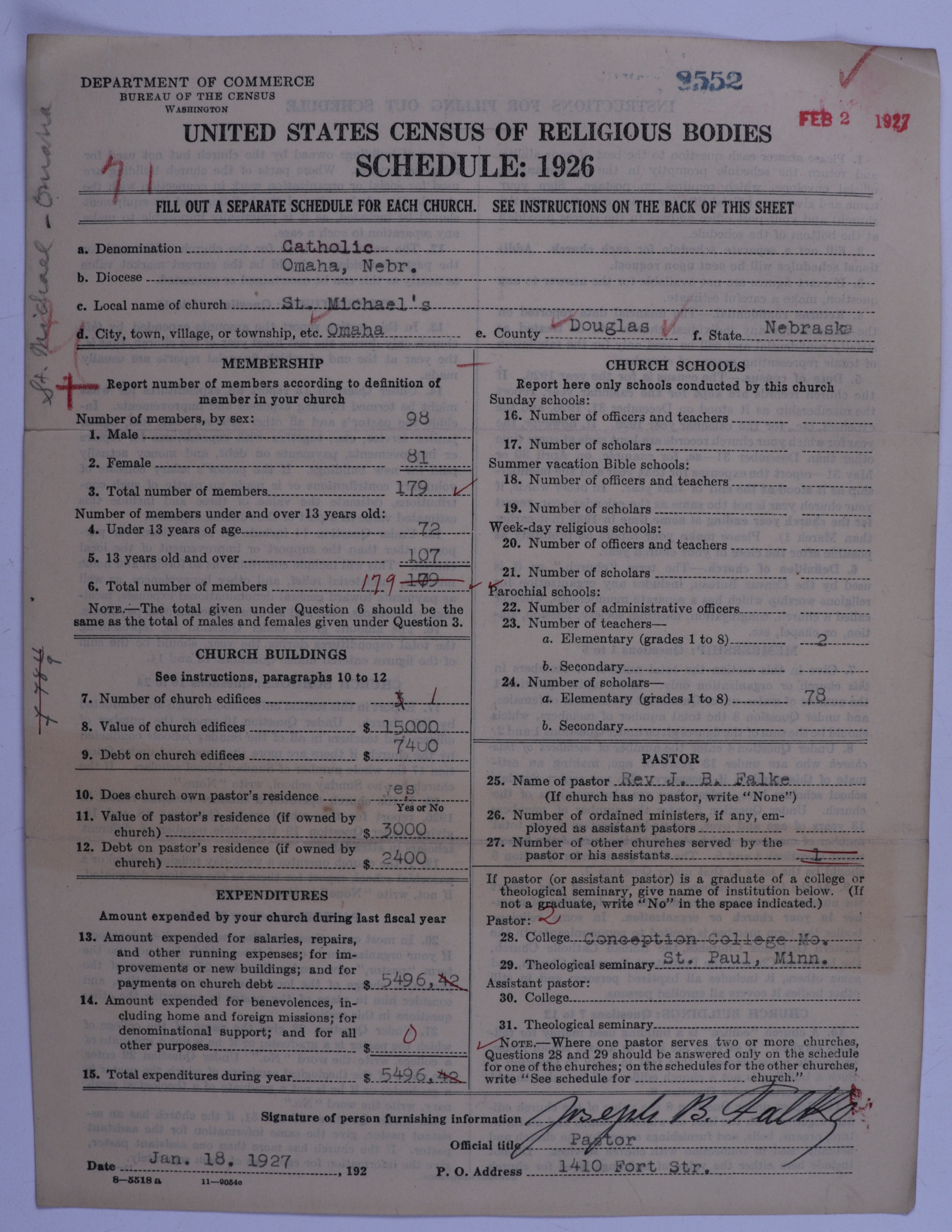 - Roman Catholic Church: 8552