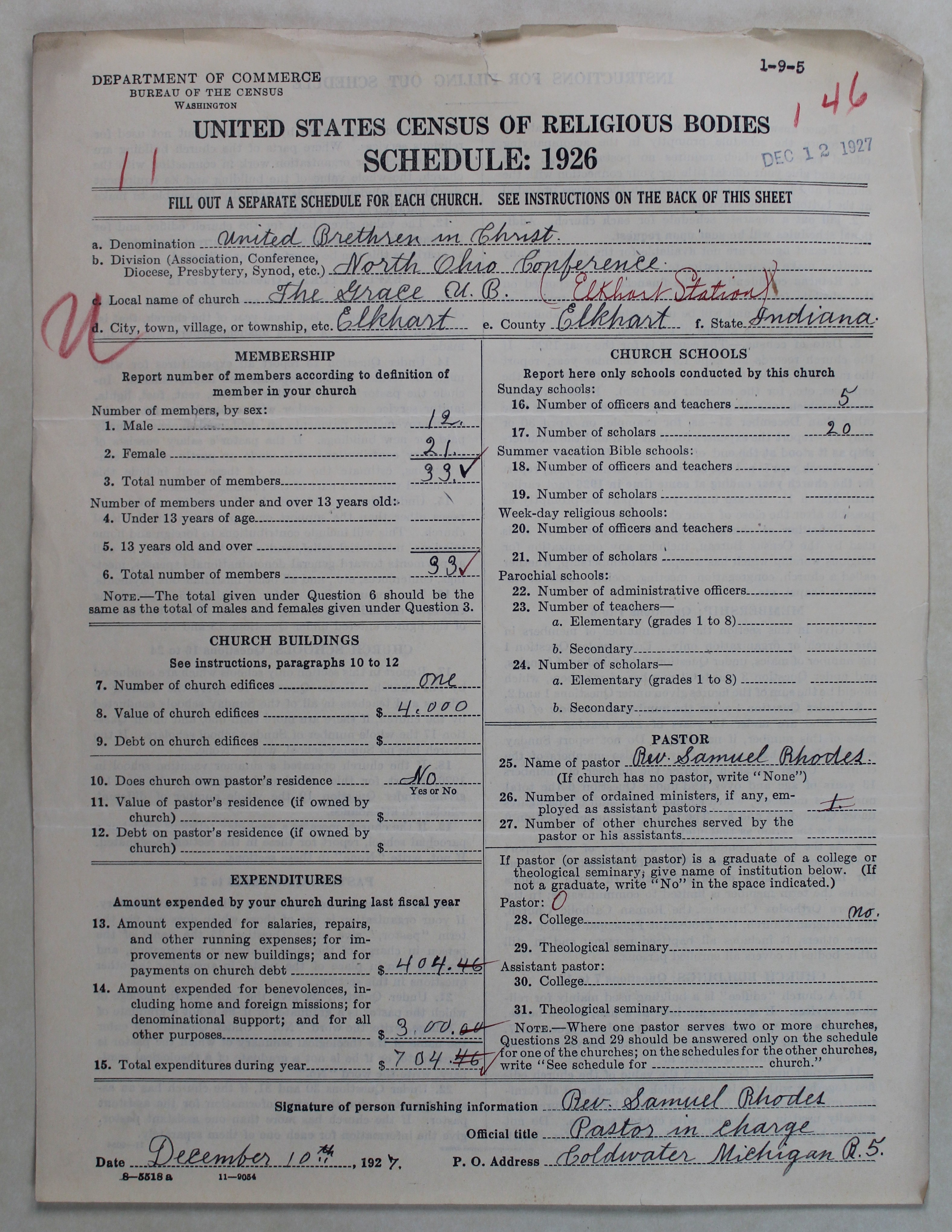 - Church of the United Brethren in Christ (Old Constitution): 146