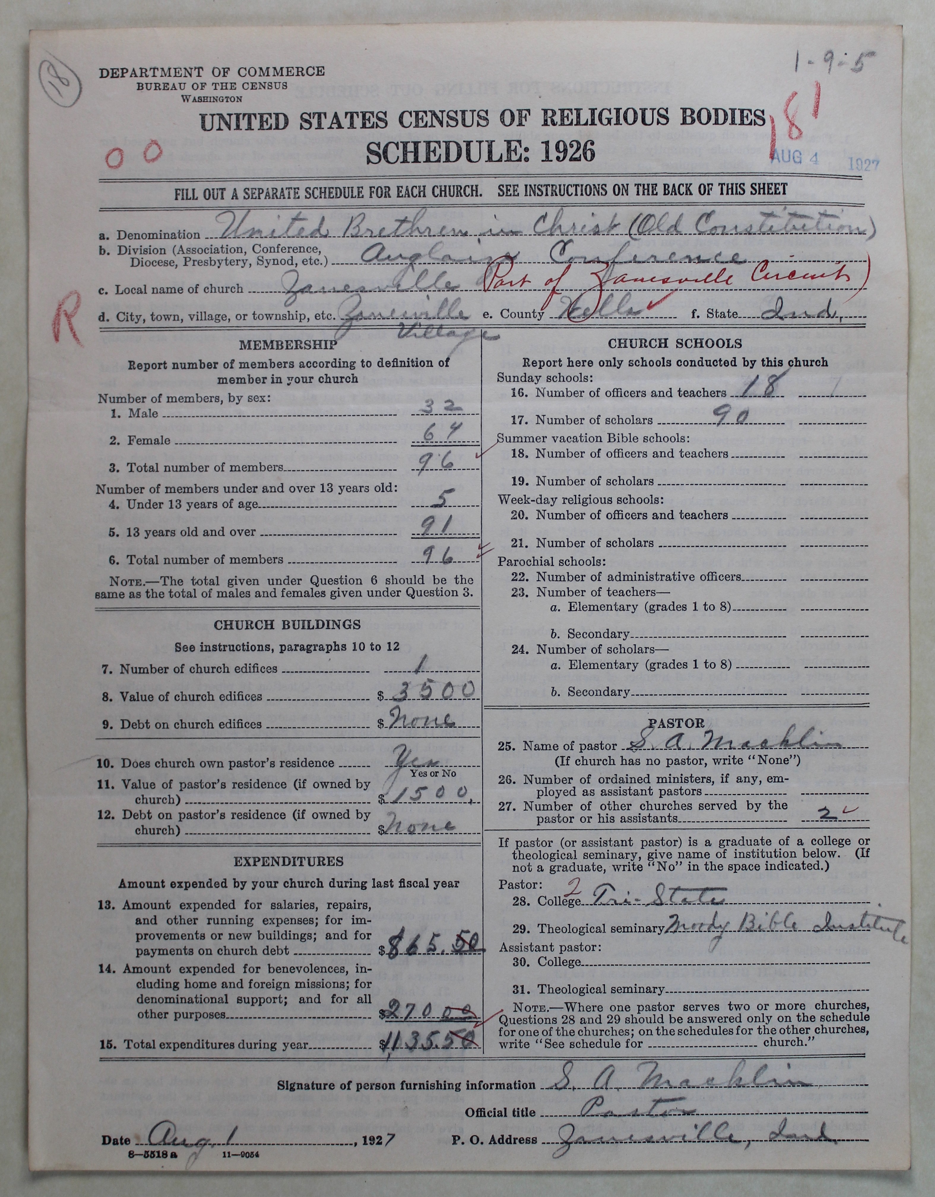 - Church of the United Brethren in Christ (Old Constitution): 181