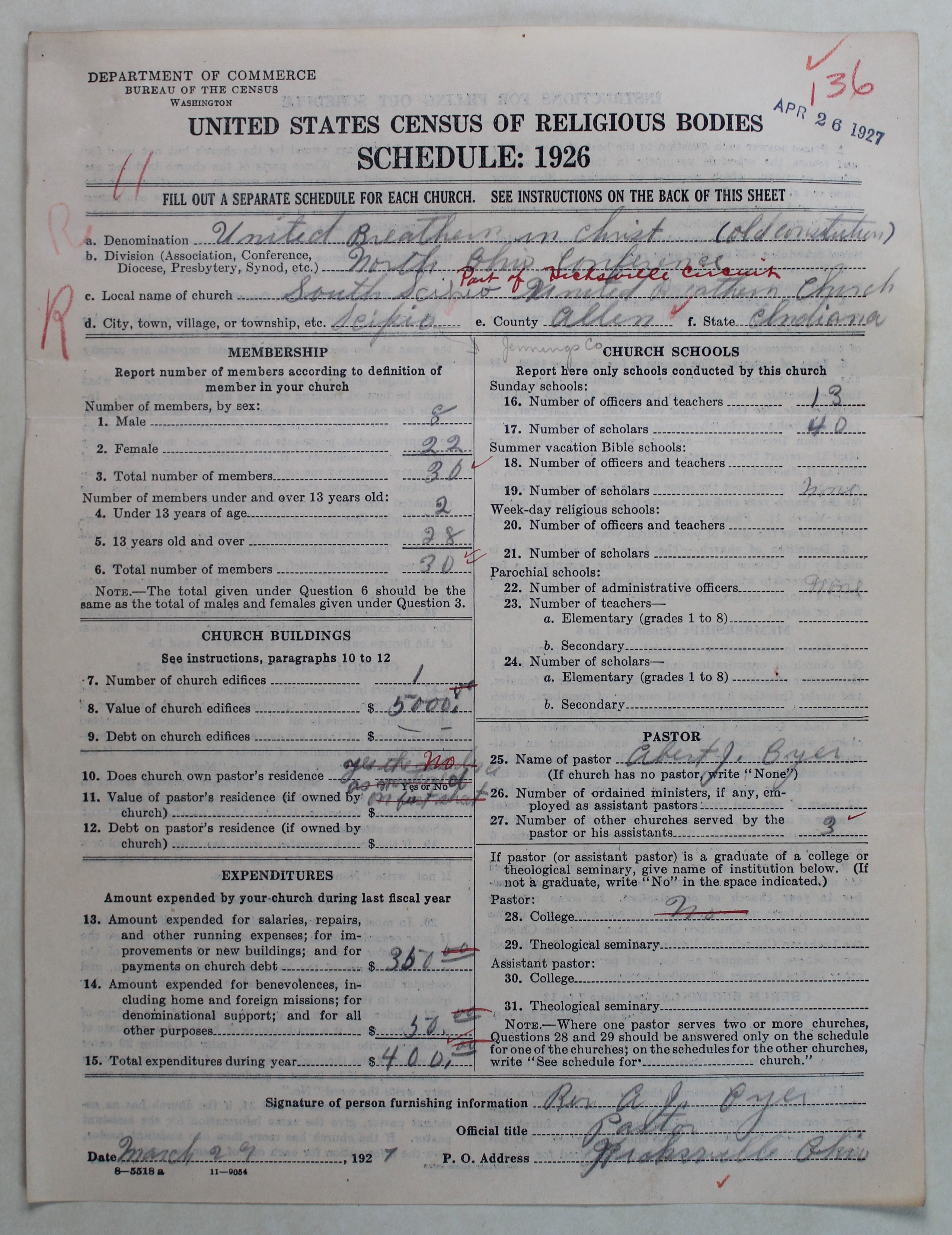 - Church of the United Brethren in Christ (Old Constitution): 136