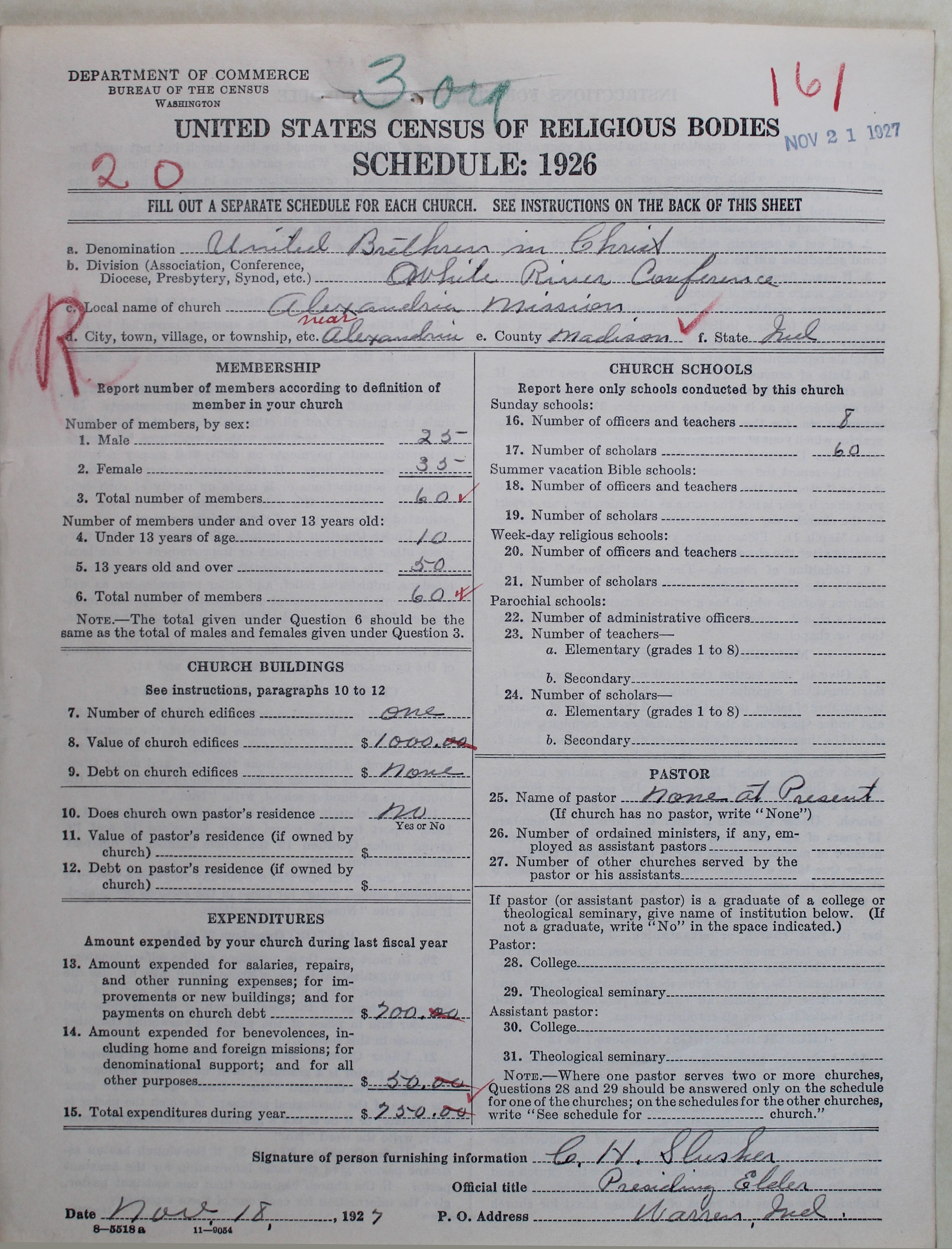 - Church of the United Brethren in Christ (Old Constitution): 161