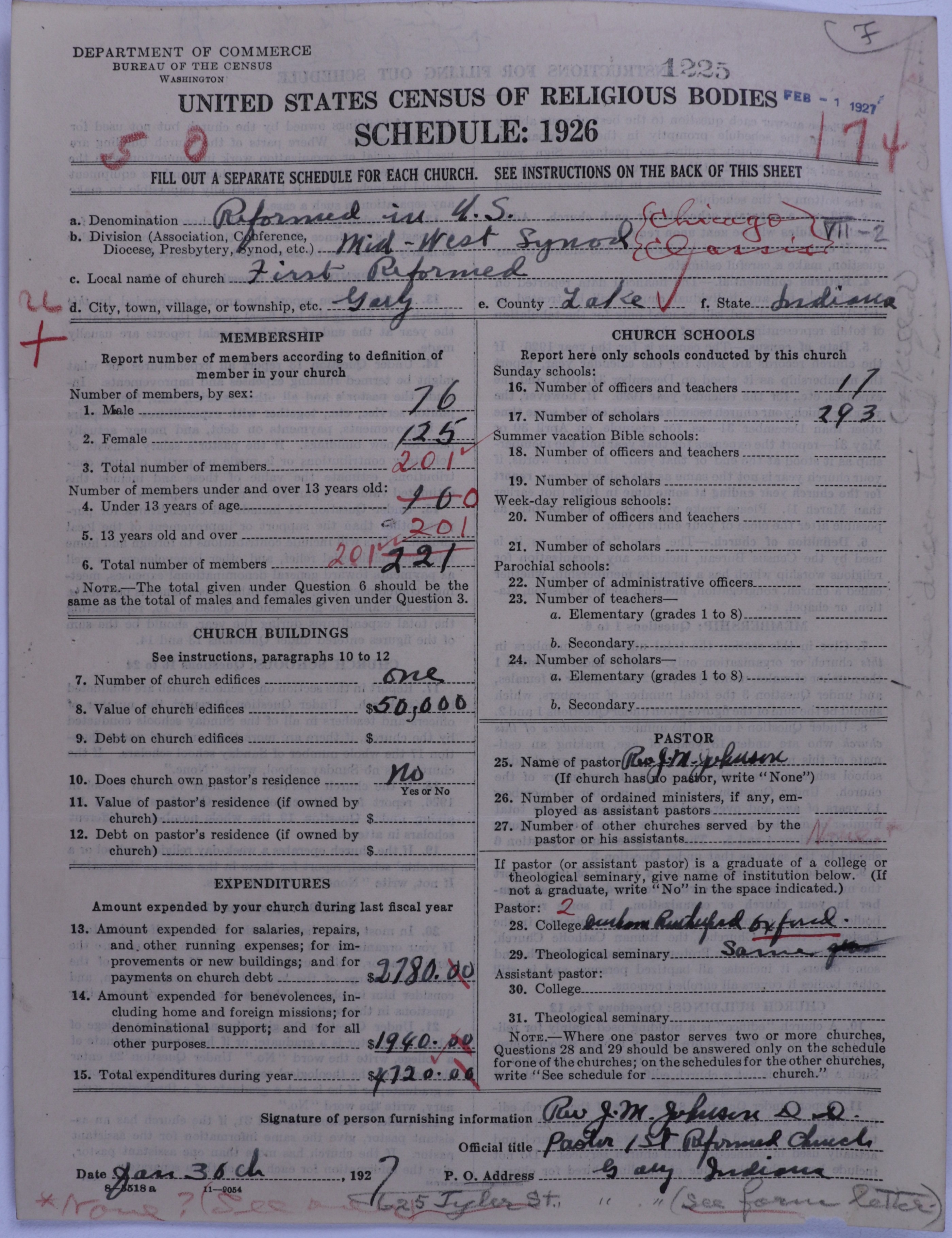 - Reformed Church in the United States: 1225