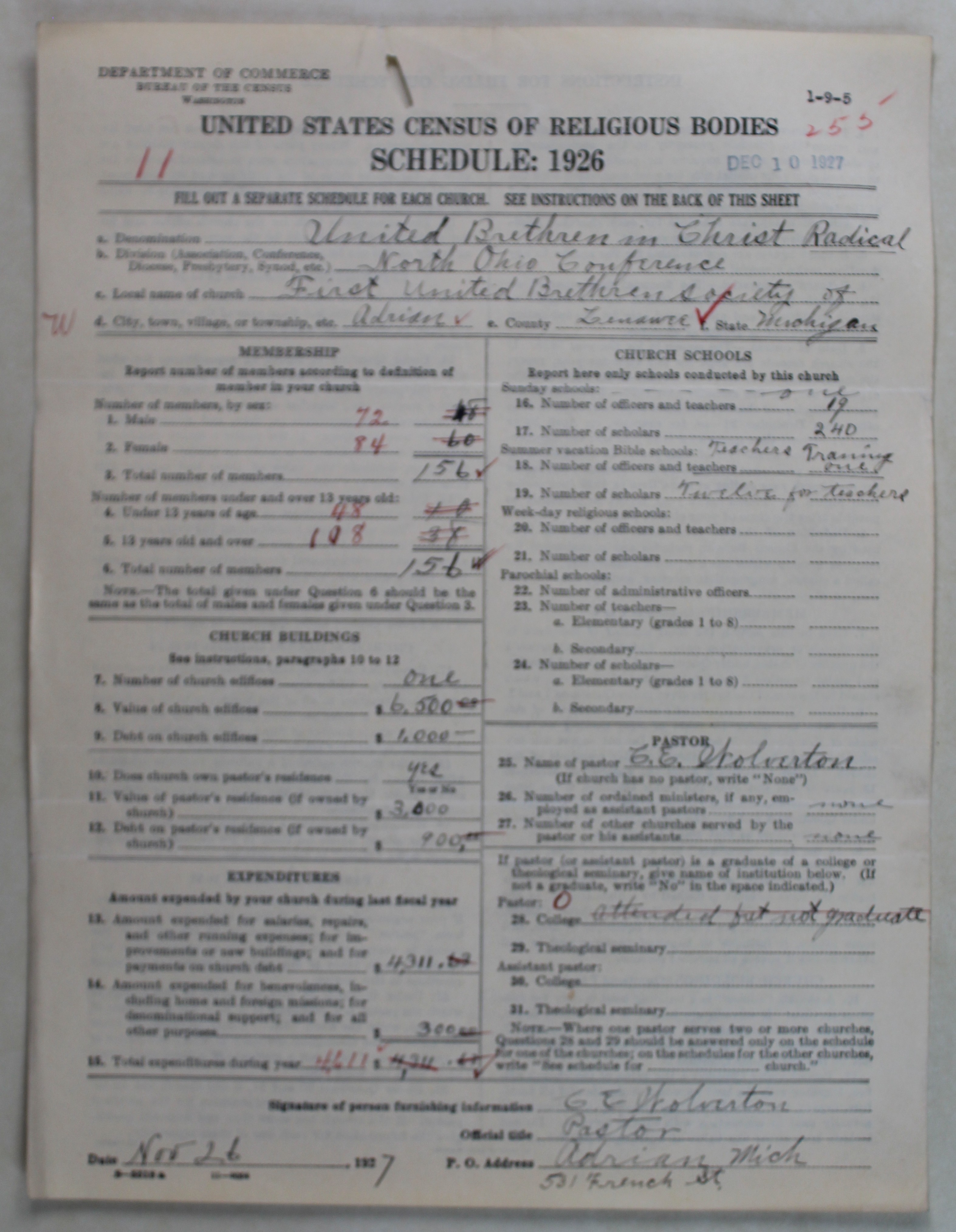 - Church of the United Brethren in Christ (Old Constitution): 255