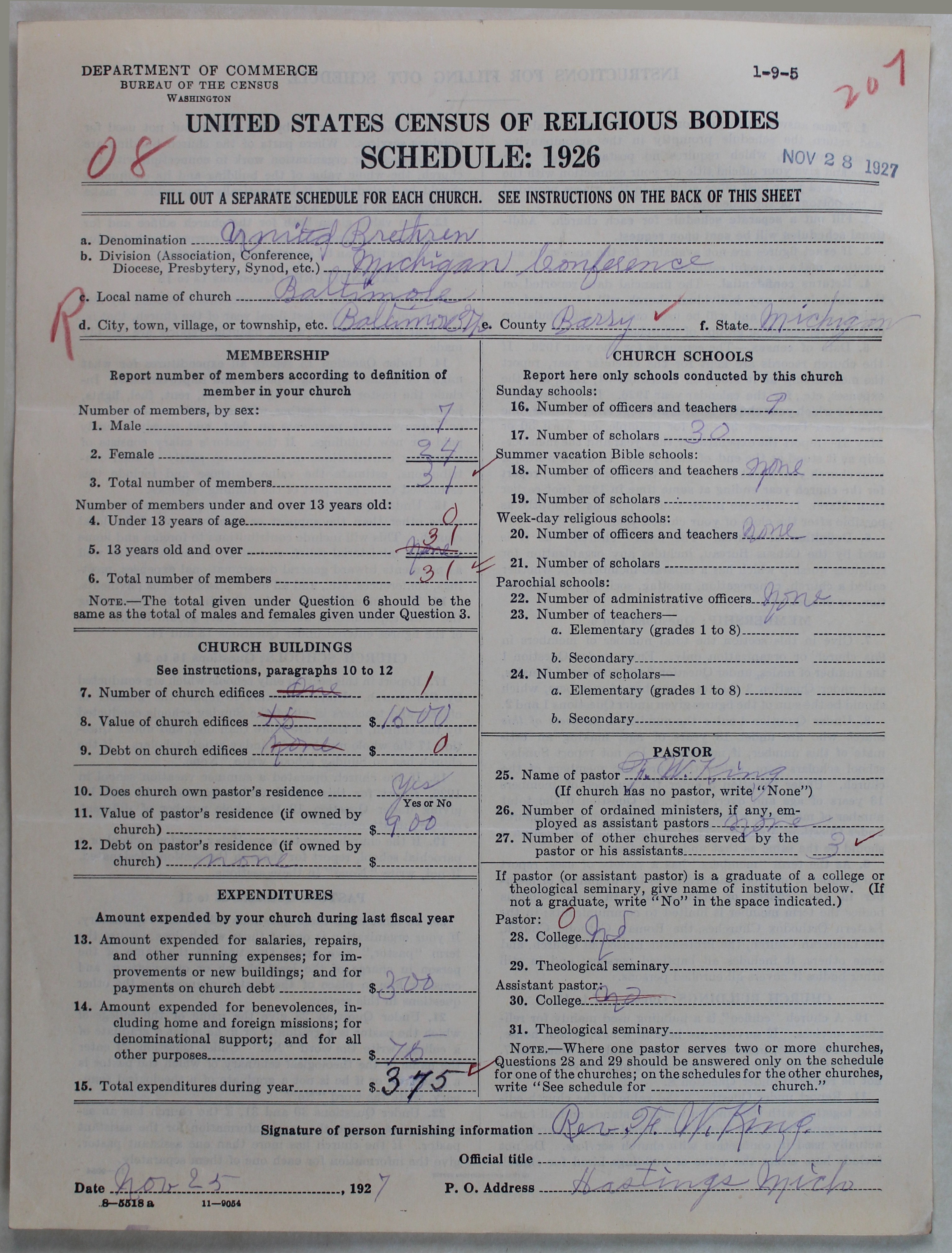 - Church of the United Brethren in Christ (Old Constitution): 207