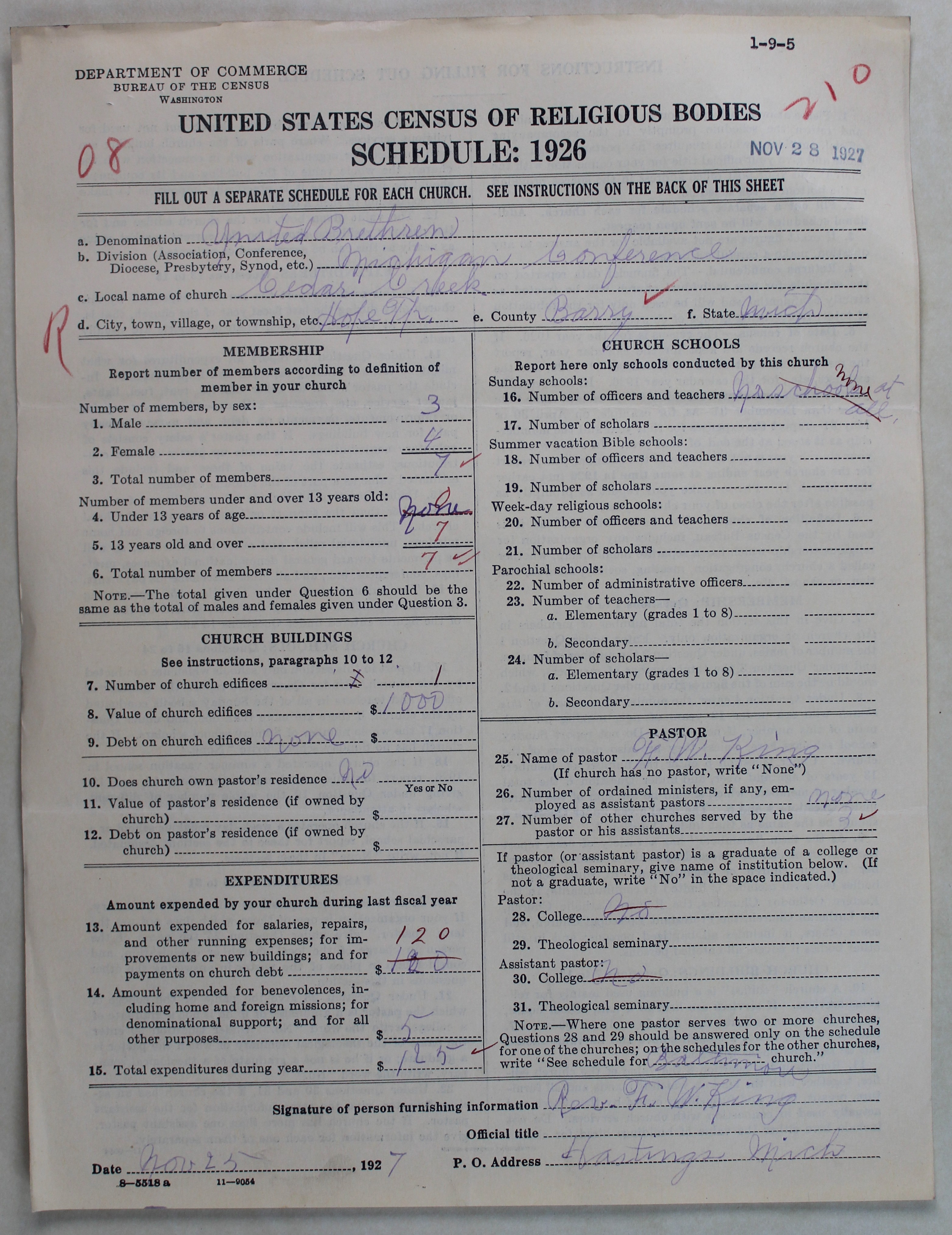 - Church of the United Brethren in Christ (Old Constitution): 210