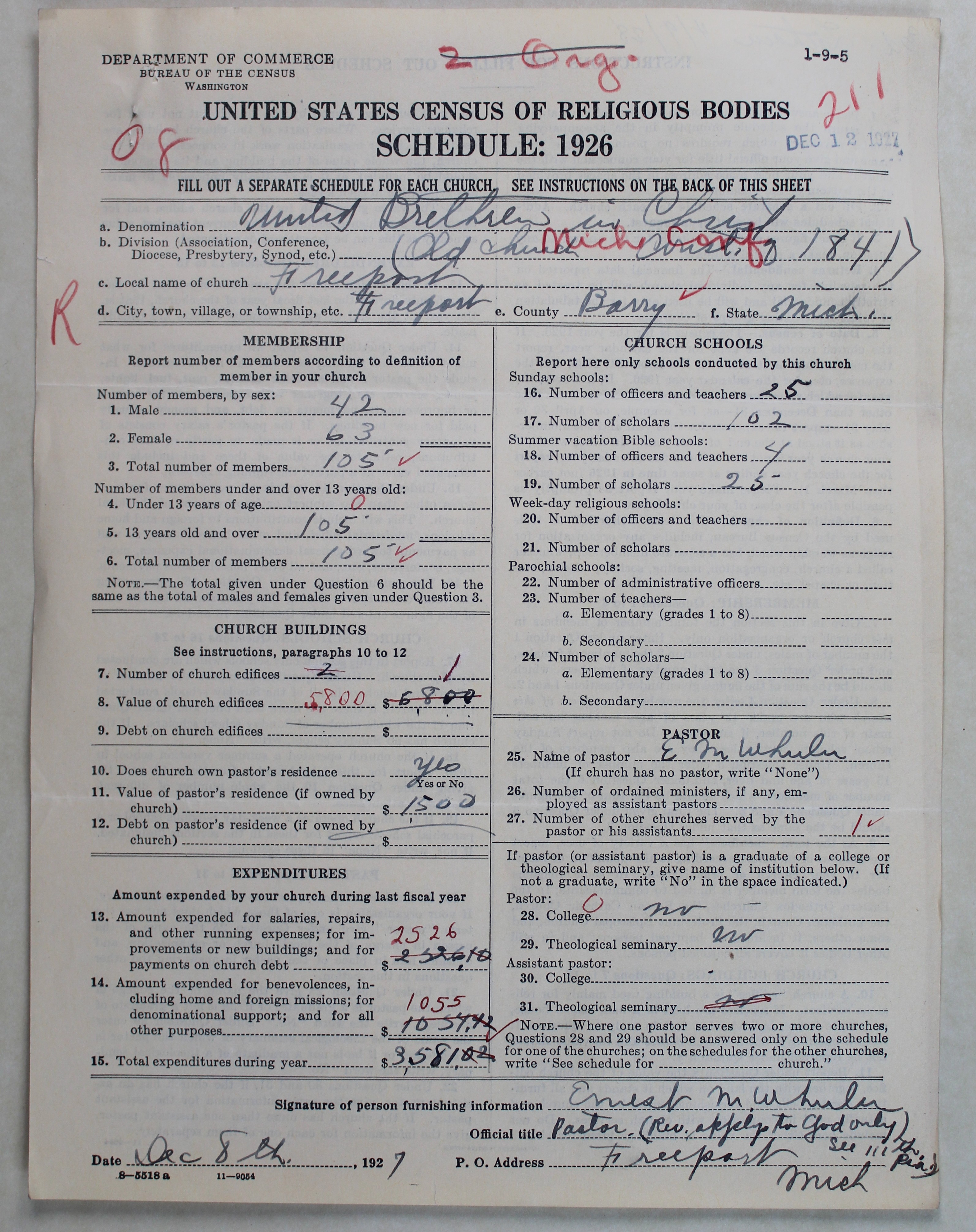 - Church of the United Brethren in Christ (Old Constitution): 211
