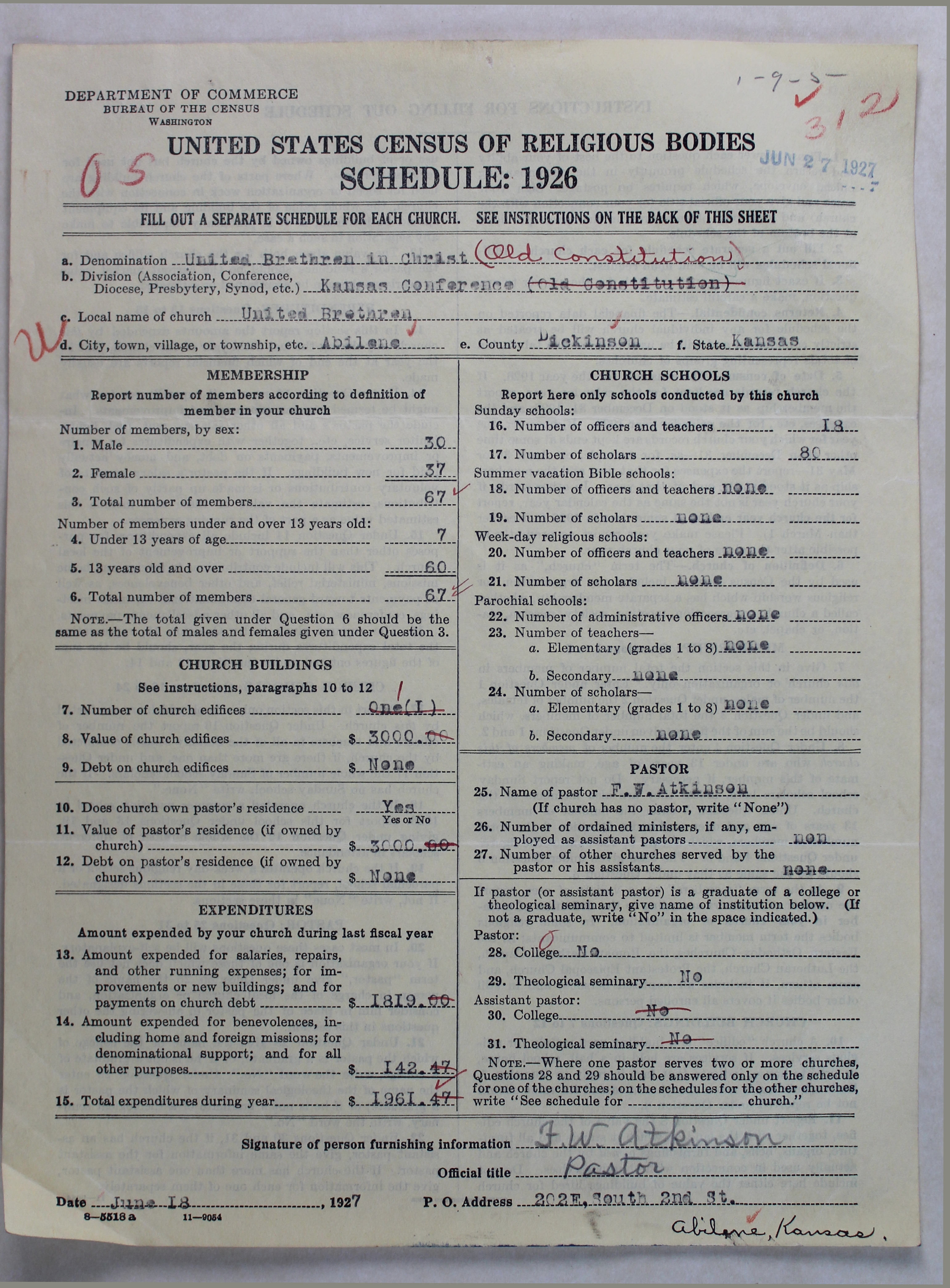 - Church of the United Brethren in Christ (Old Constitution): 312