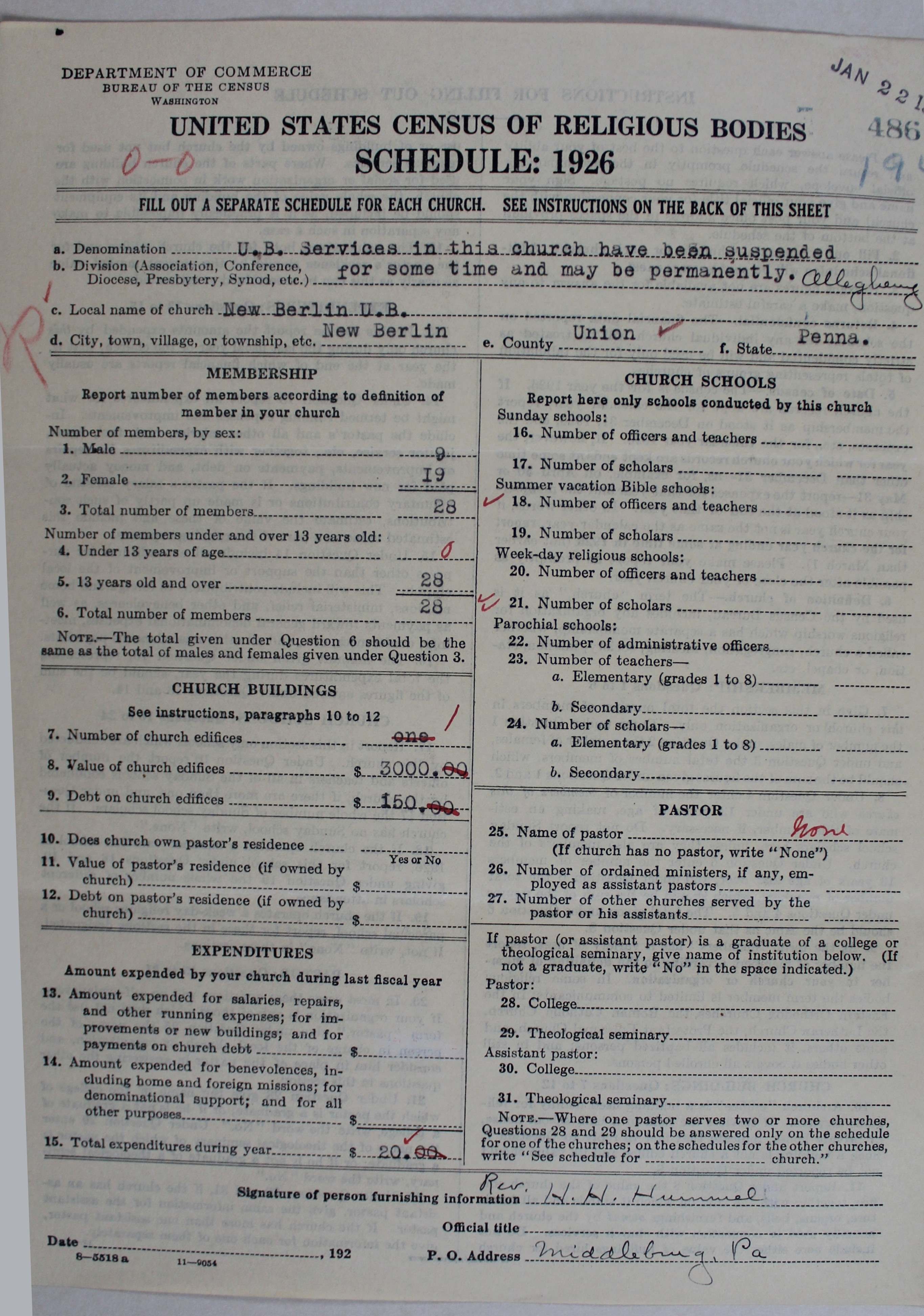 Church of the United Brethren in Christ: 486