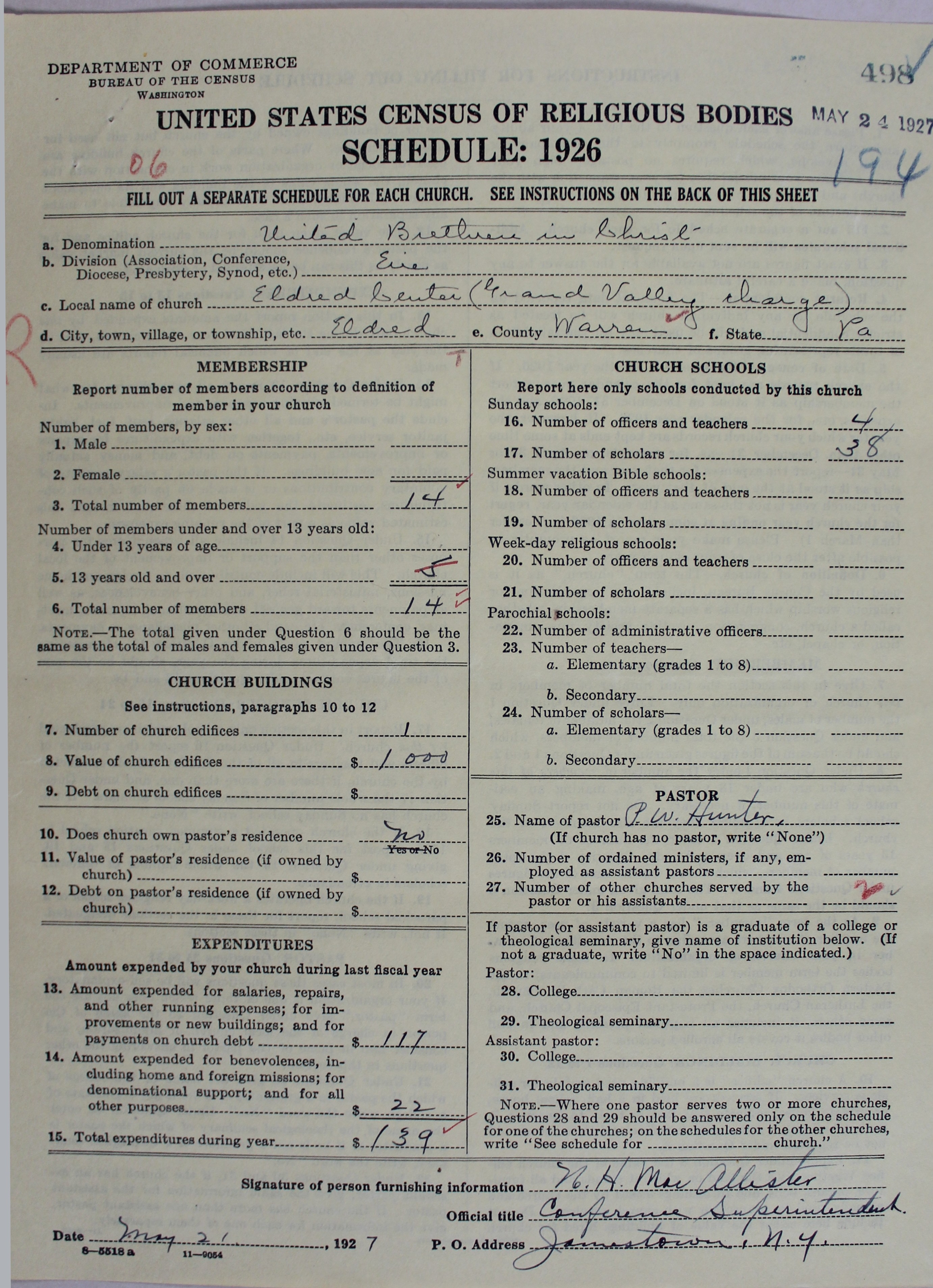 Church of the United Brethren in Christ: 498