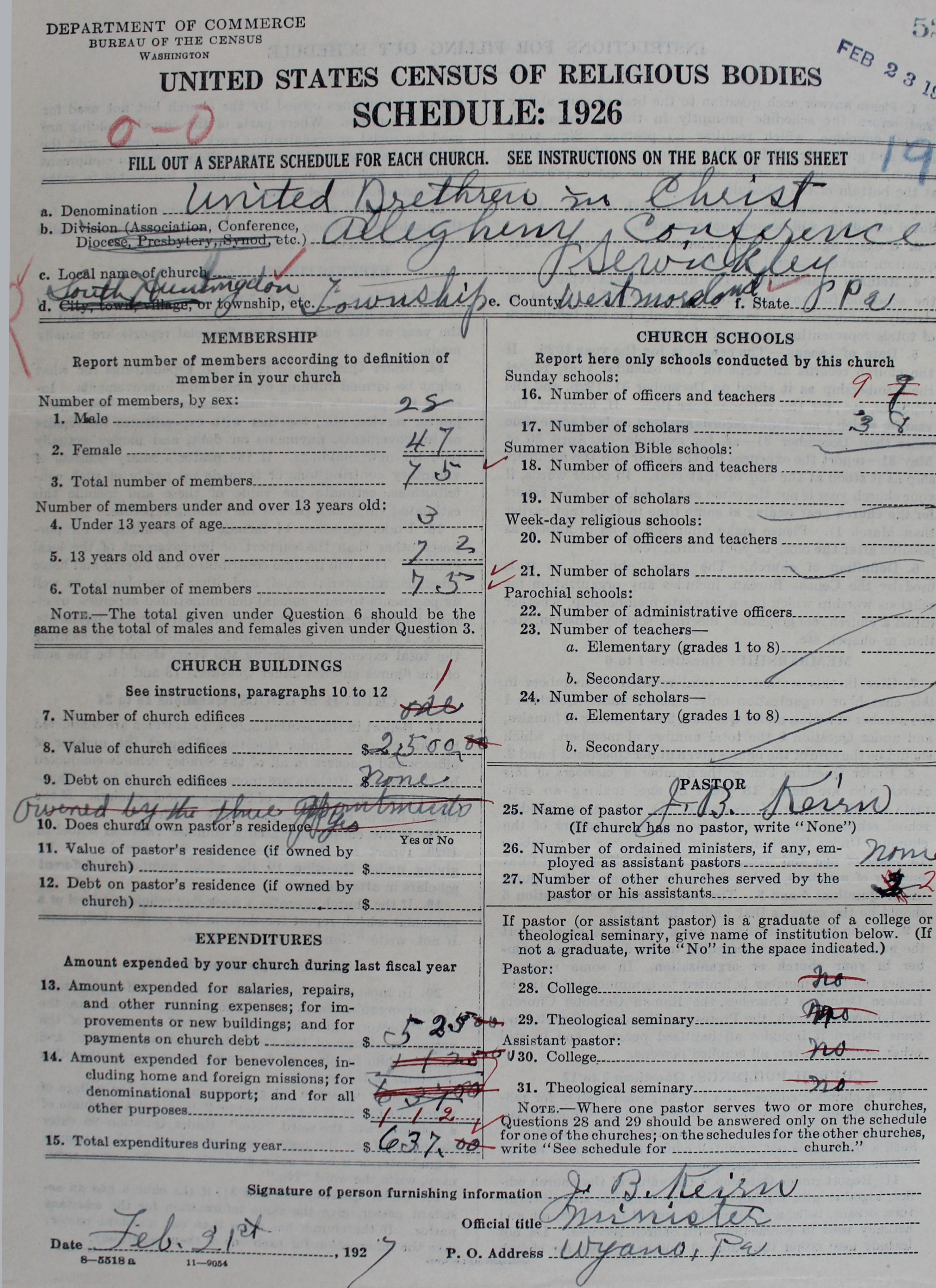 Church of the United Brethren in Christ: 523