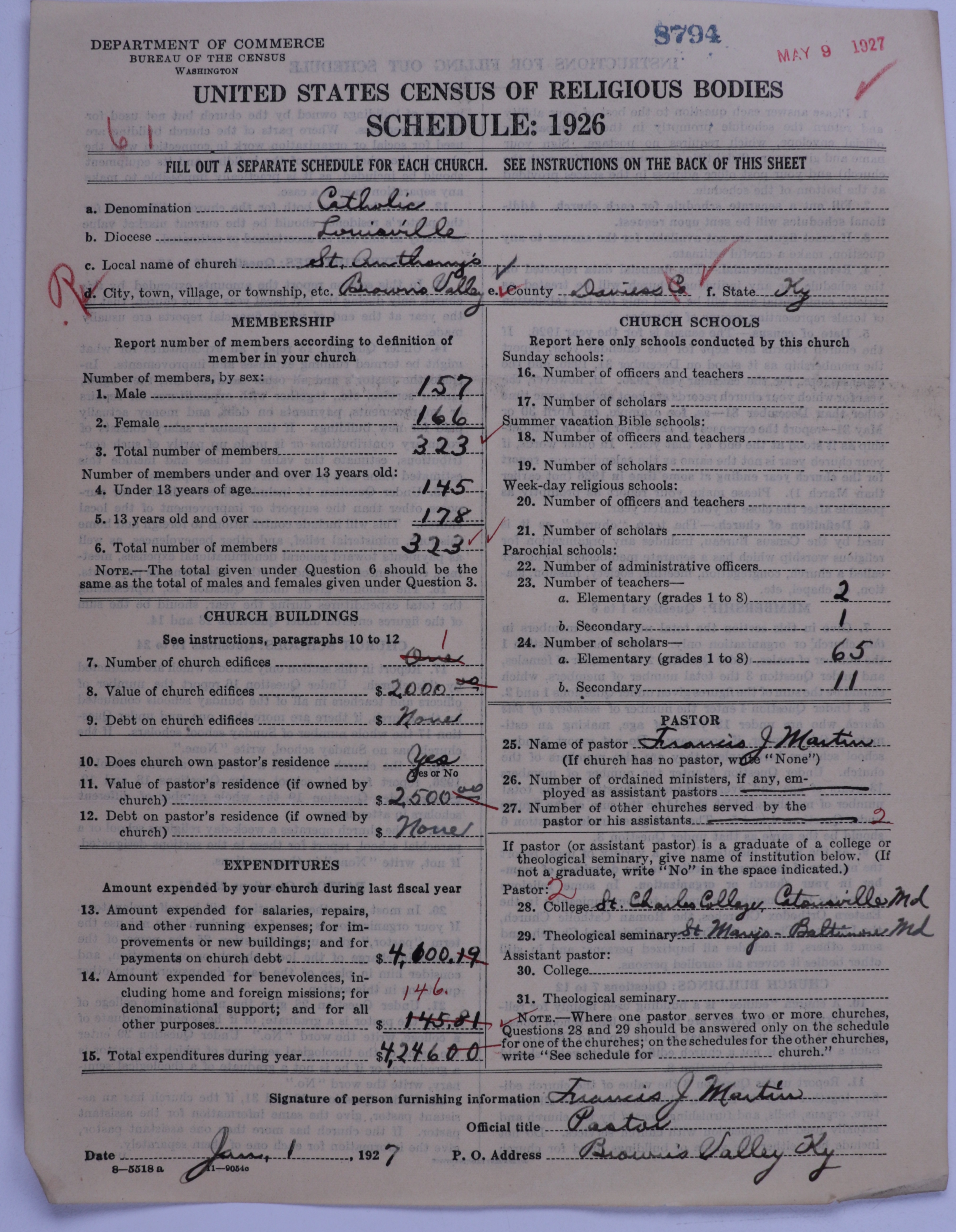 - Roman Catholic Church: 8794