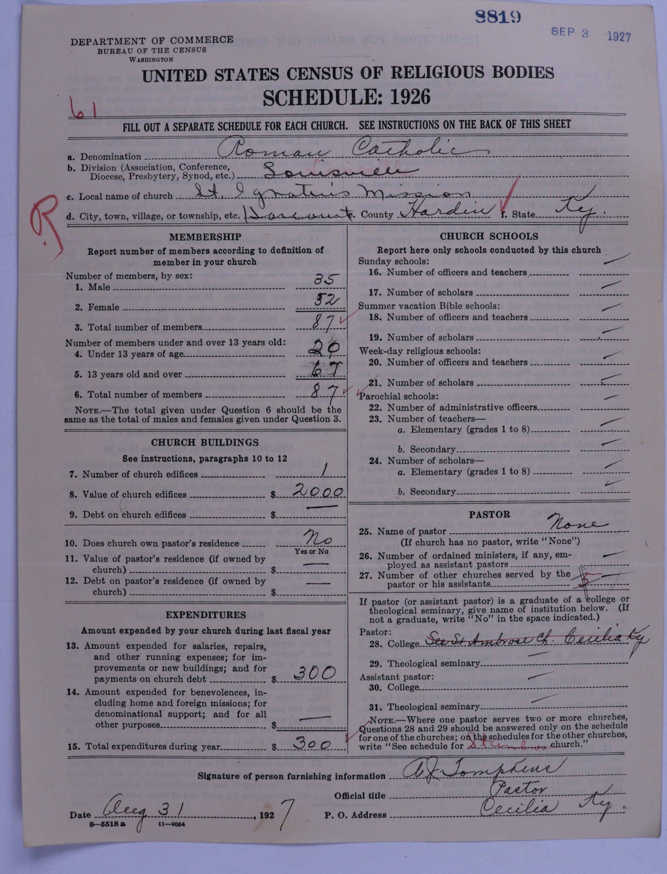- Roman Catholic Church: 8819