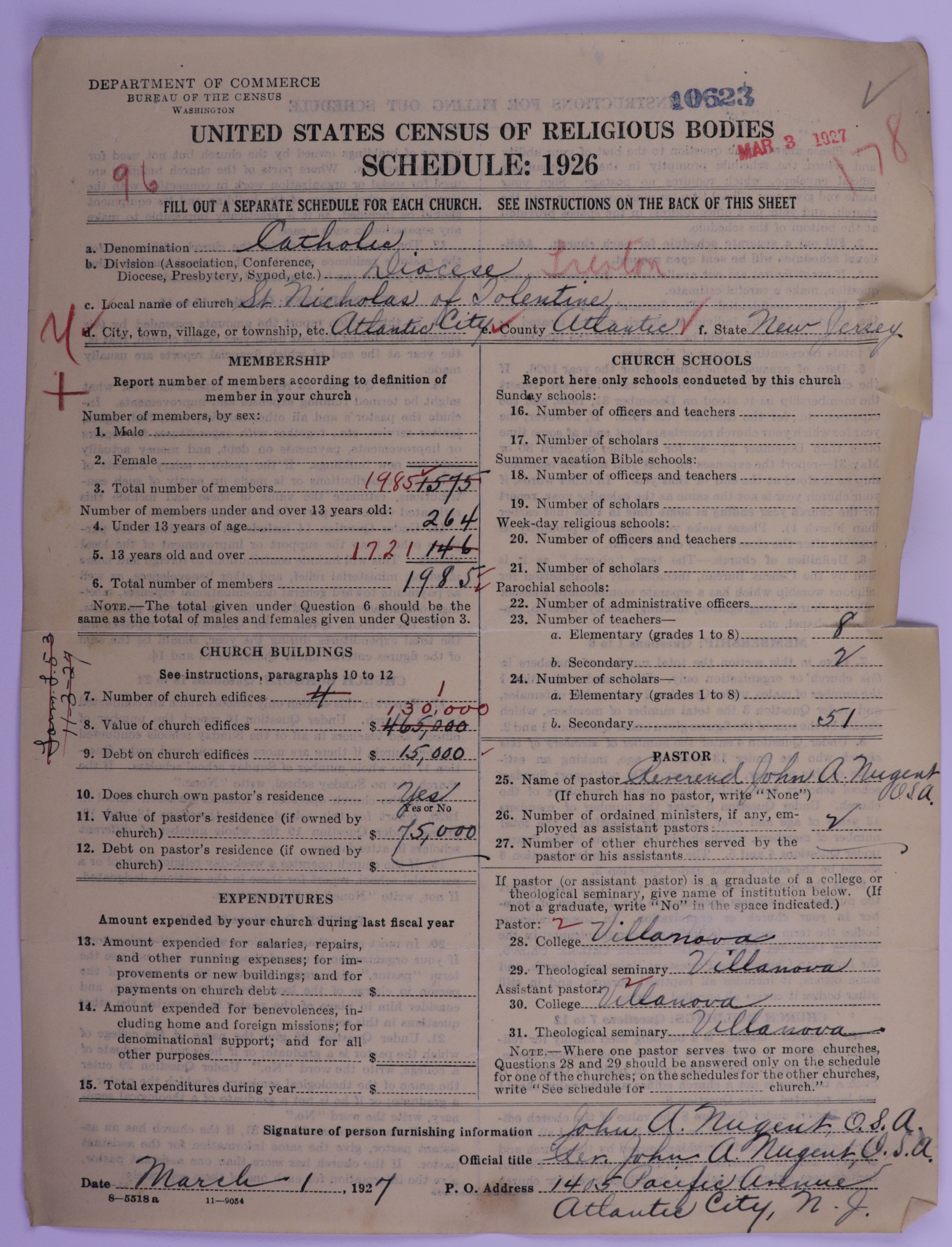 - Roman Catholic Church: 10623