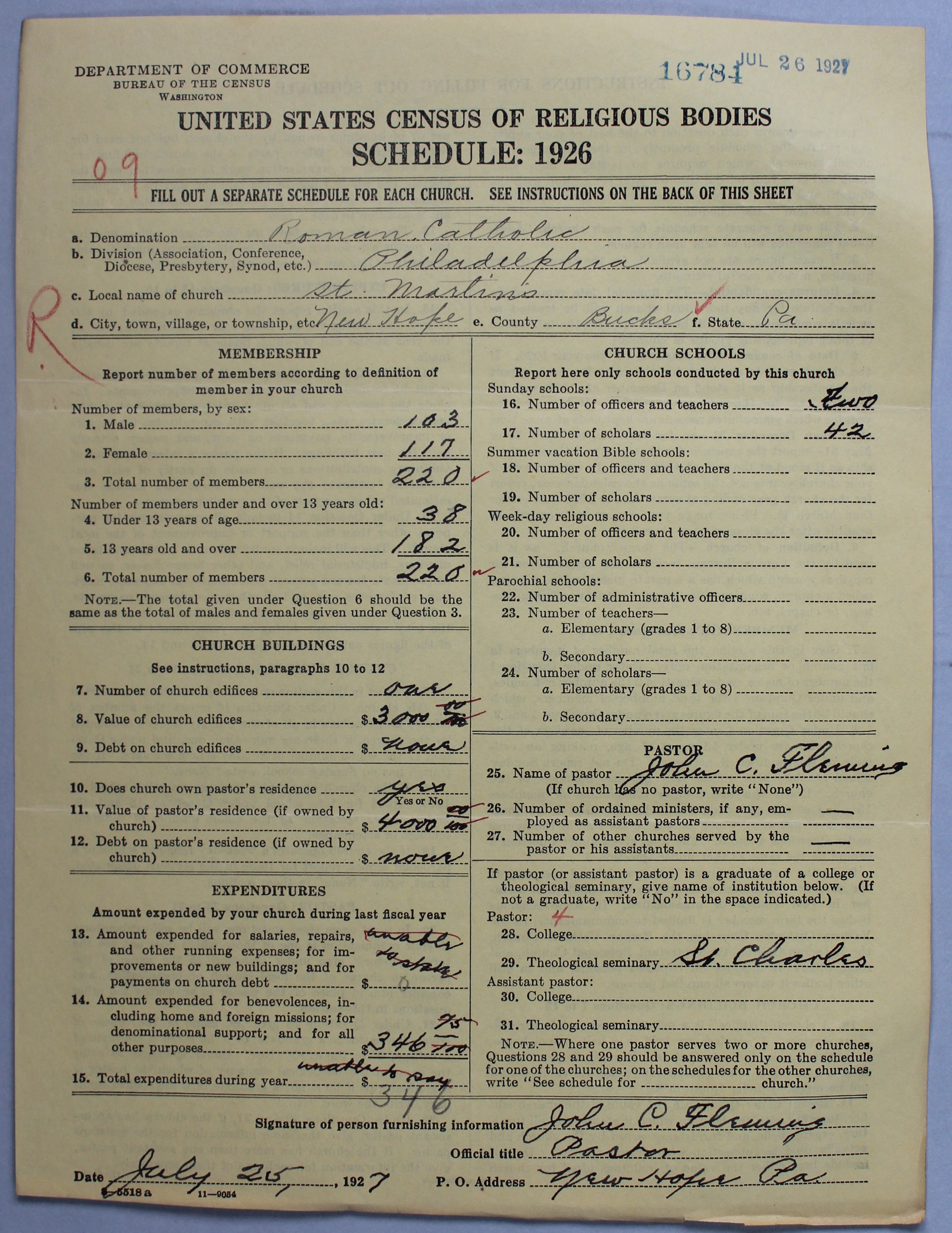 - Roman Catholic Church: 16784
