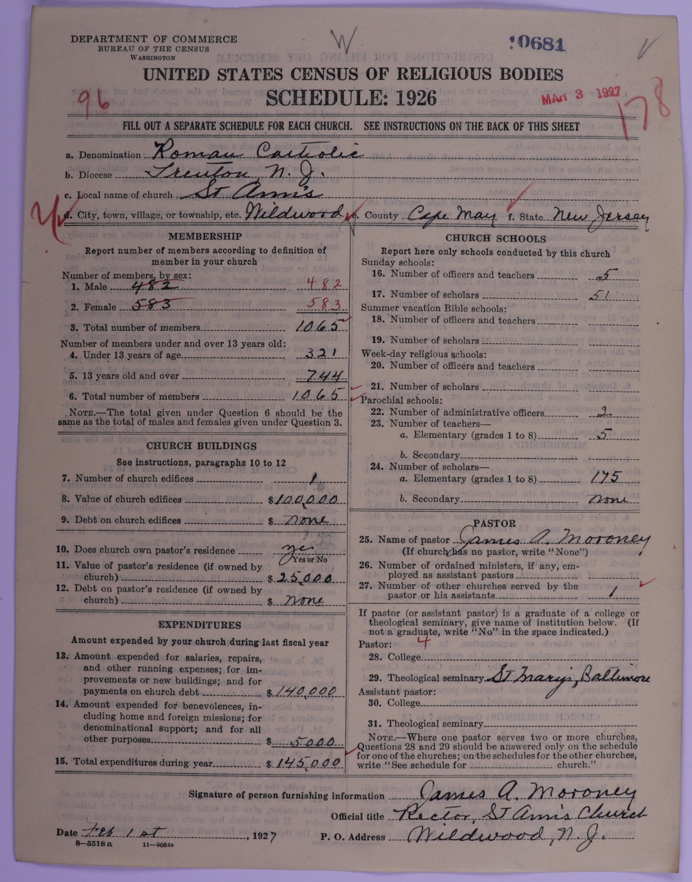 - Roman Catholic Church: 10681