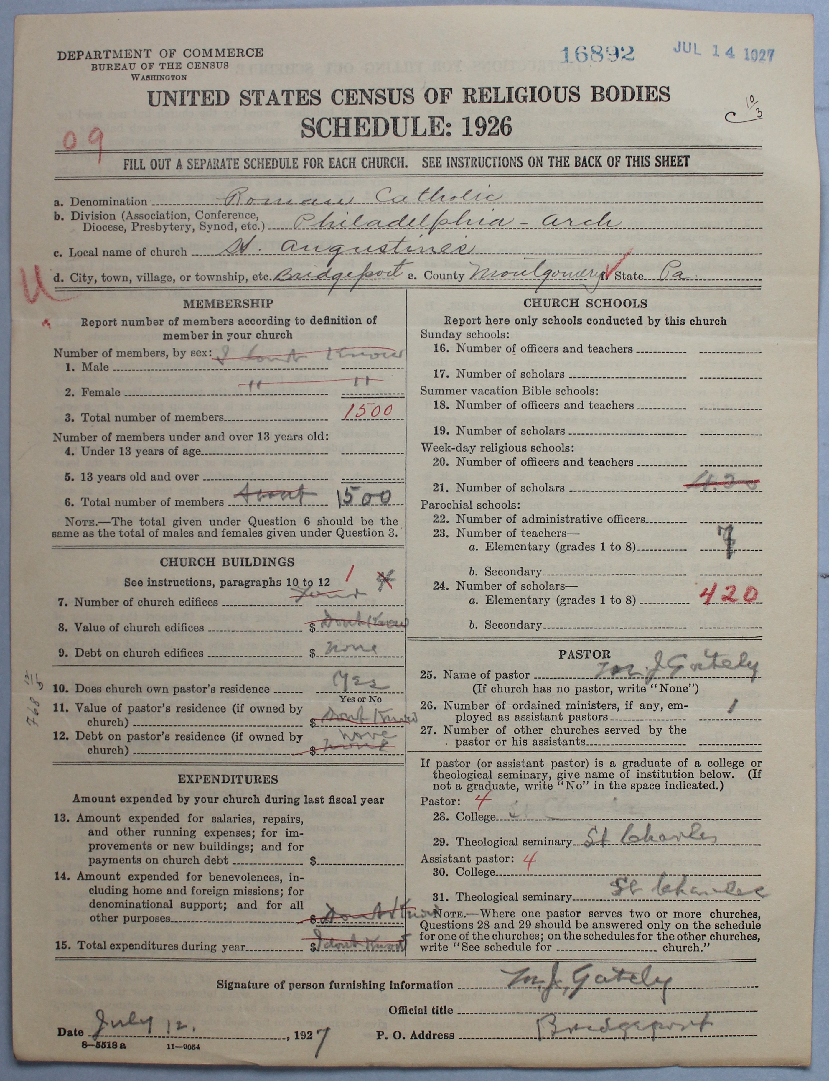 - Roman Catholic Church: 16892