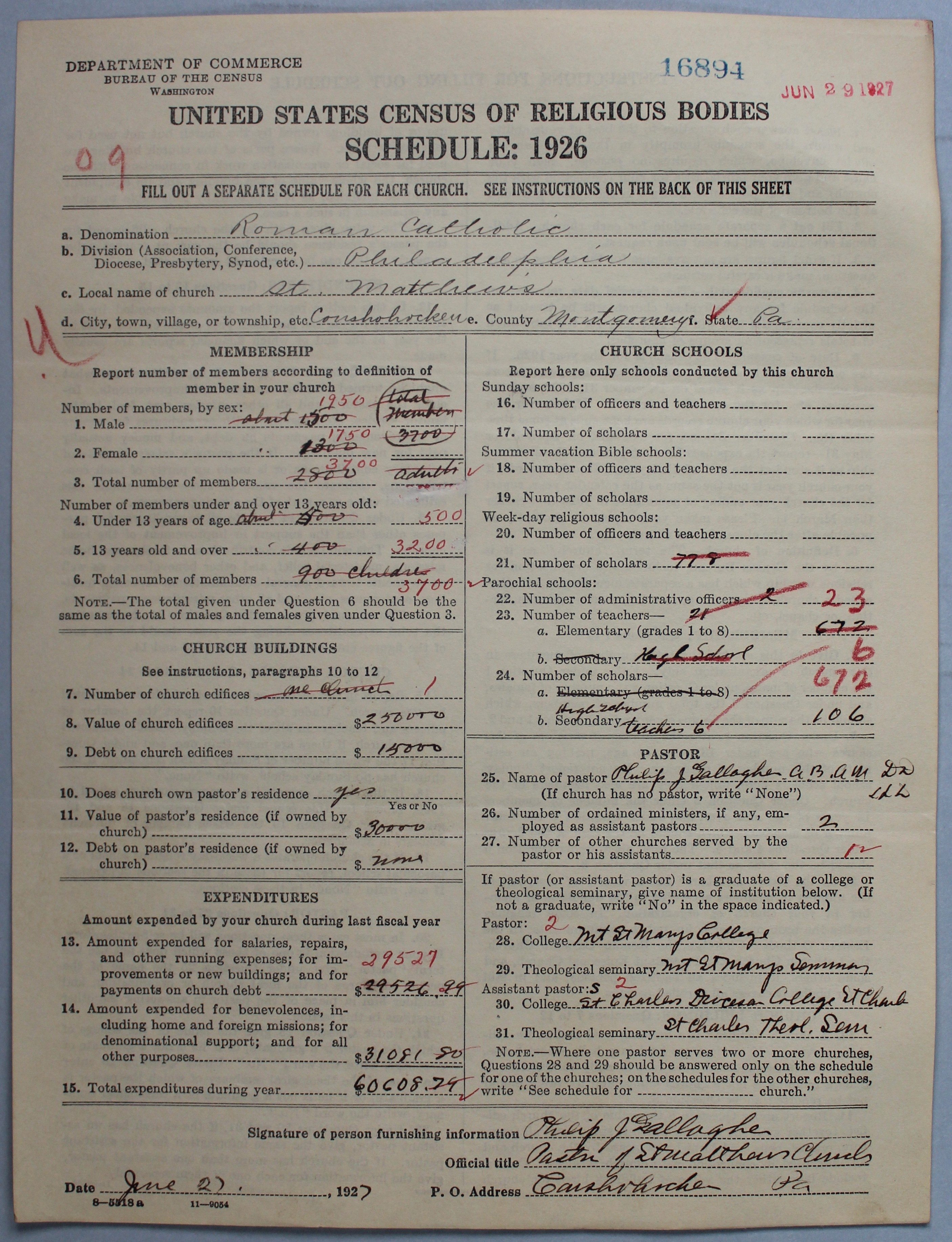- Roman Catholic Church: 16894