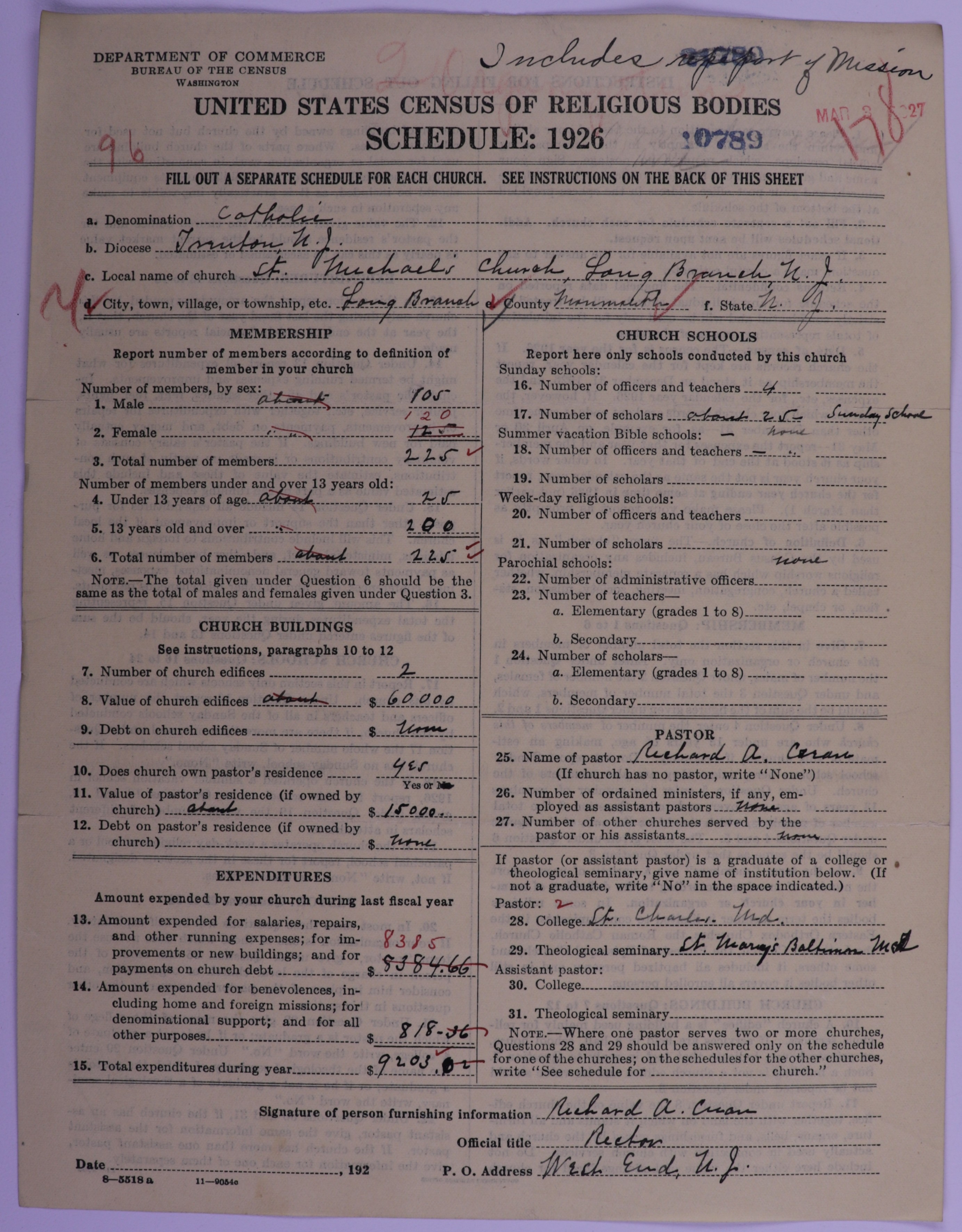 - Roman Catholic Church: 10789