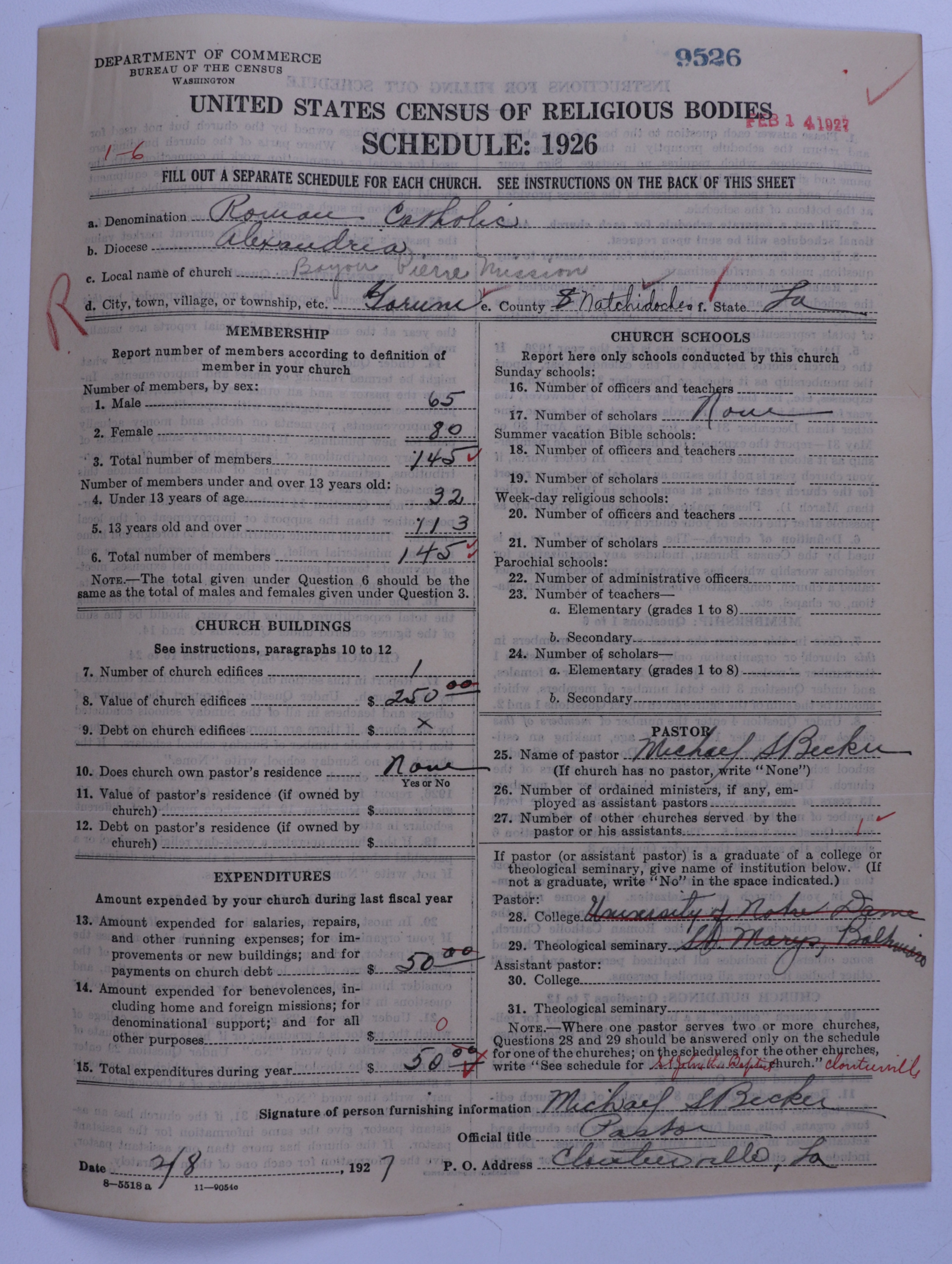 - Roman Catholic Church: 9526