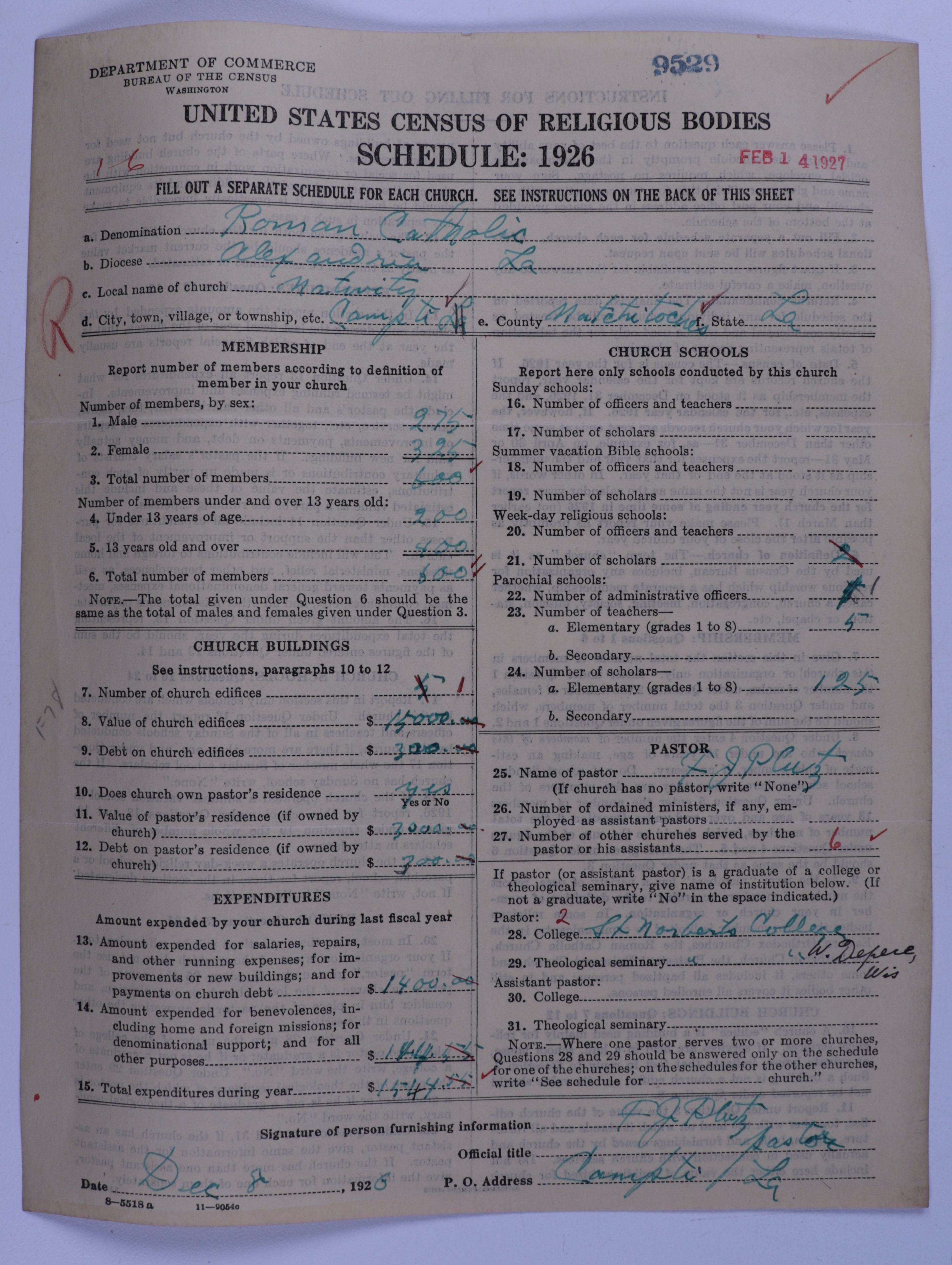 - Roman Catholic Church: 9529