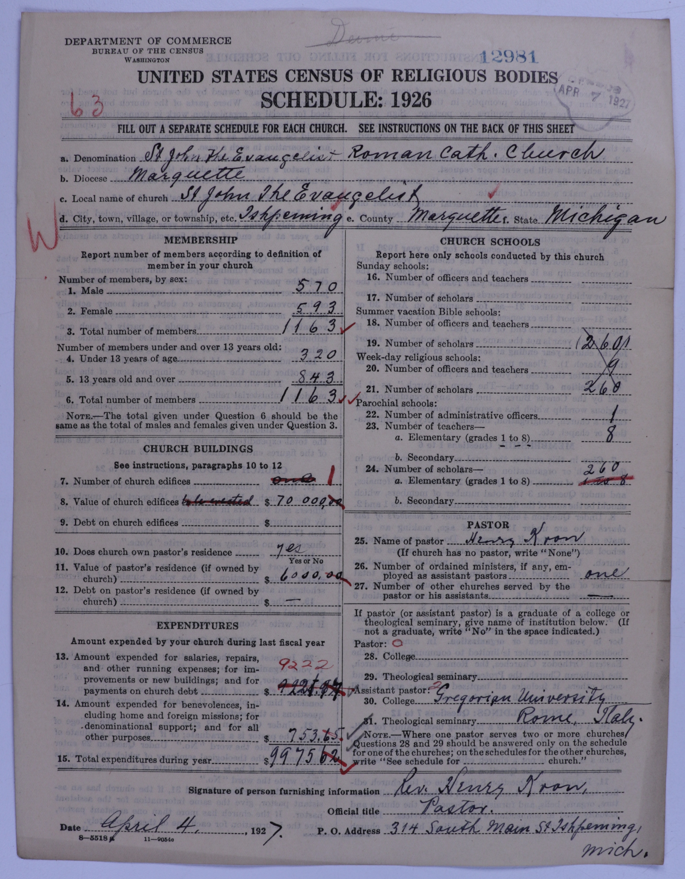 - Roman Catholic Church: 12981