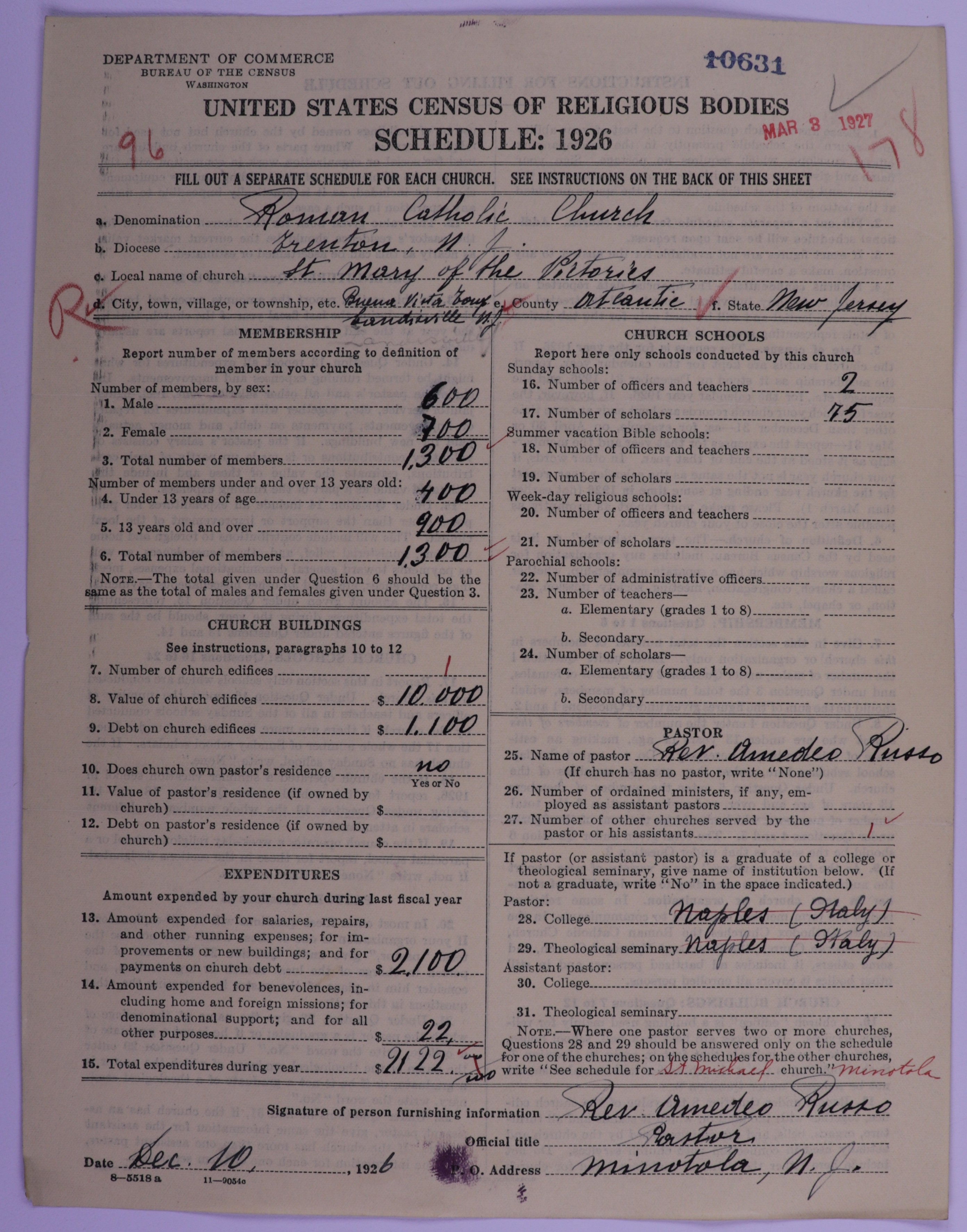 - Roman Catholic Church: 10631