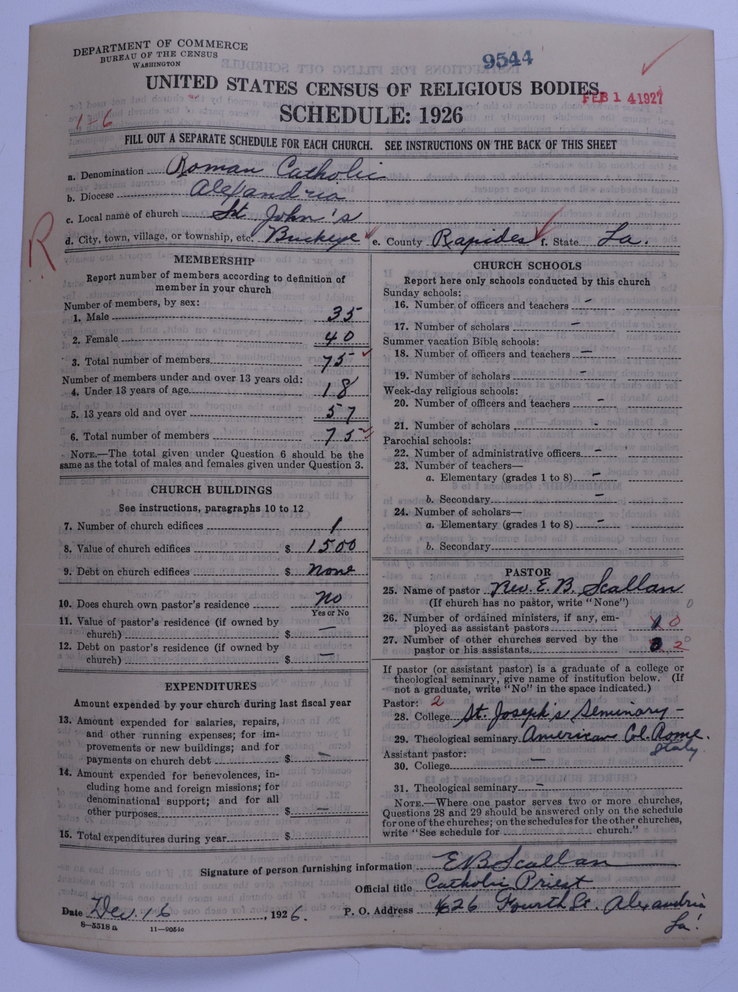 - Roman Catholic Church: 9544
